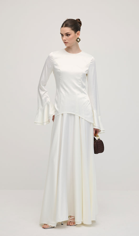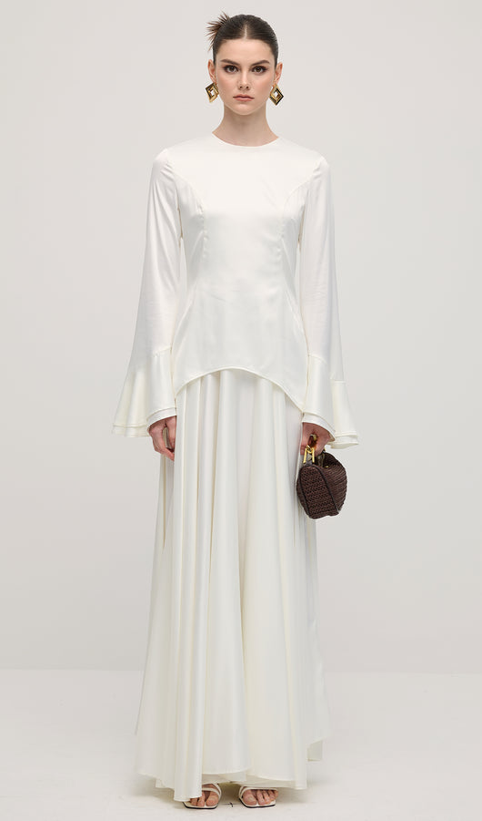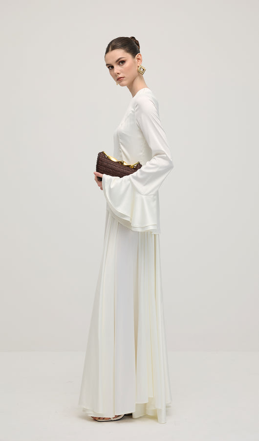يتميز هذا الفستان بفتحة رقبة واسعة وتصميم داخلي بدون حمالات مع طبقة شبكية أنيقة، ليجمع بسلاسة بين الأناقة والجاذبية. تُضفي الكشكشة عند الخصر من الأمام والخلف لمسةً من الأناقة على إطلالتكِ، مما يضمن لكِ إطلالةً أنيقة ومريحة. تُضفي التنورة الشبكية المنسدلة سحرًا خلابًا، بينما يوفر الصدر المبطن الراحة والتغطية. مثالي للمناسبات الرسمية أو الخاصة، يتميز هذا الفستان بطوله الطويل الذي يُضفي عليه لمسةً من الأناقة والرقي، مما يجعله خيارًا مثاليًا لأمسيات ساحرة.