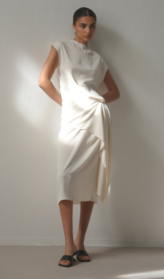 يبلغ طول الموديل 5 أقدام و 10 بوصات / 178 سم ويرتدي المقاس S.
