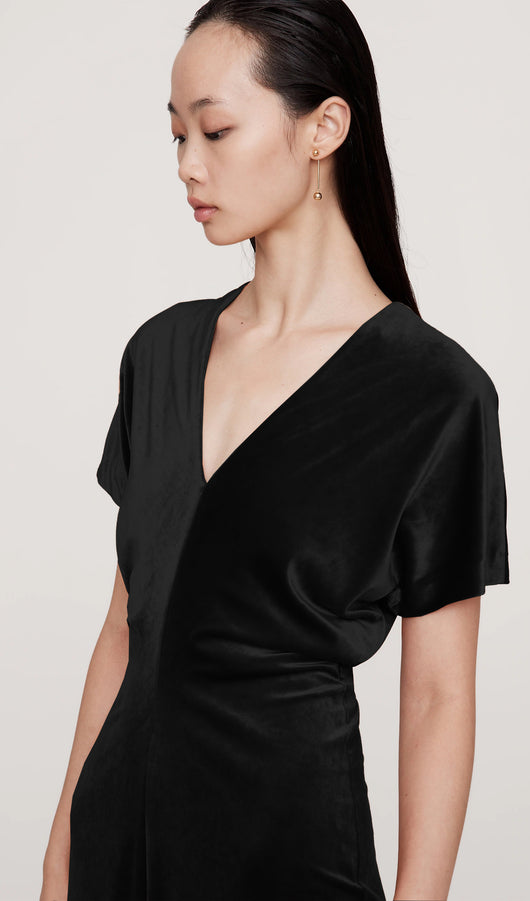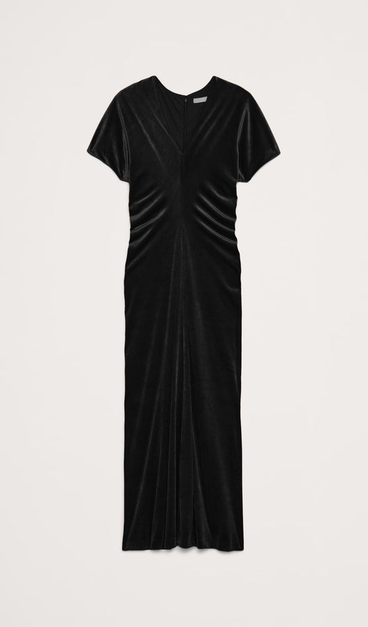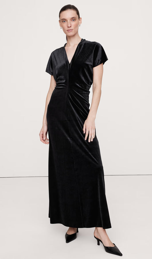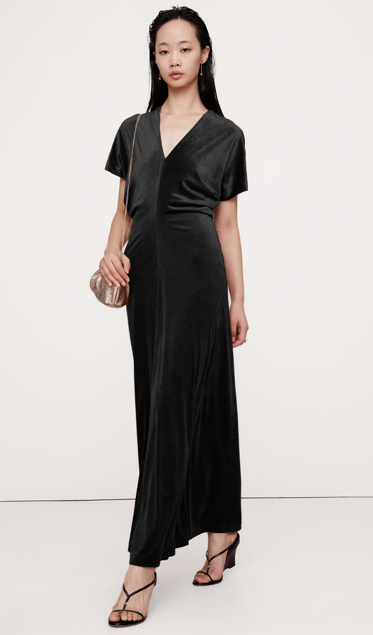 فستان ماكسي مخملي بقصّة منحرفة - أسود