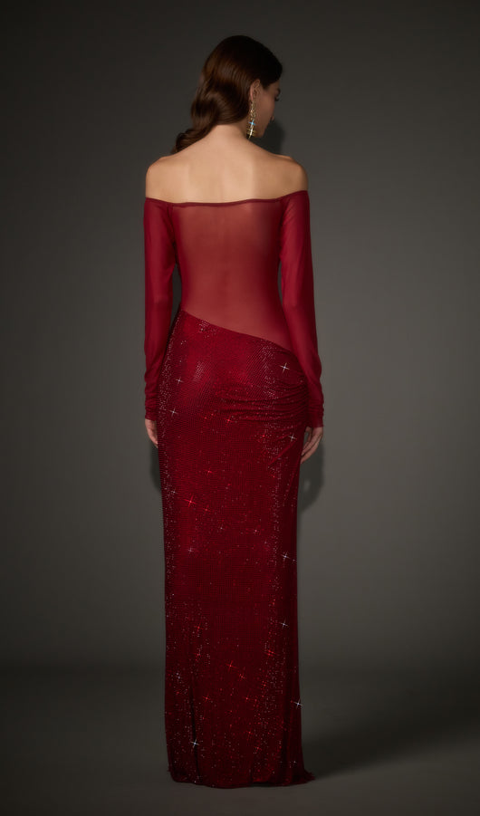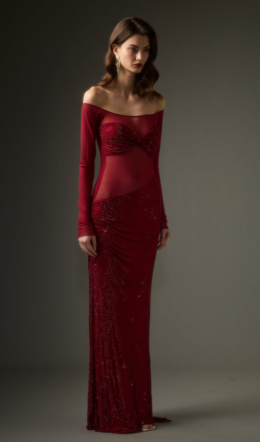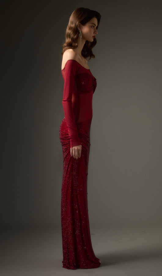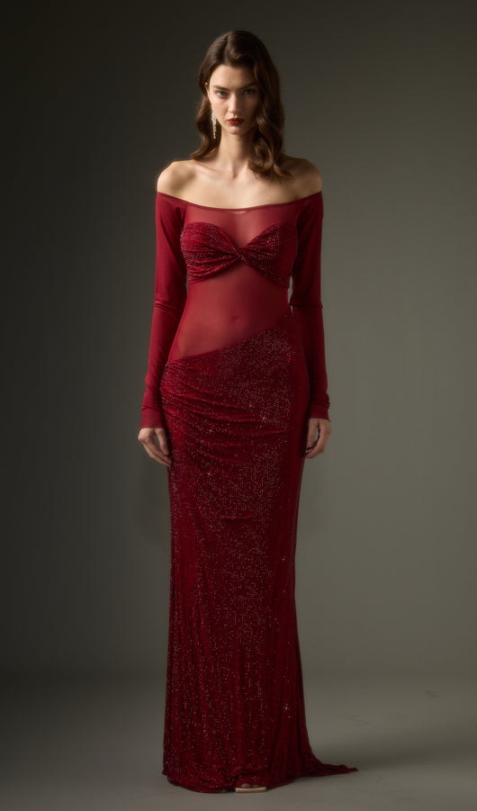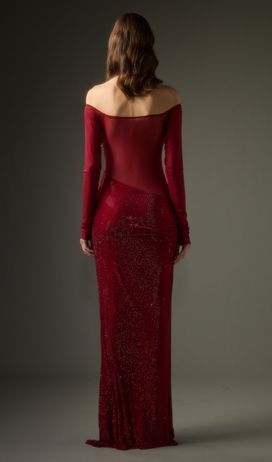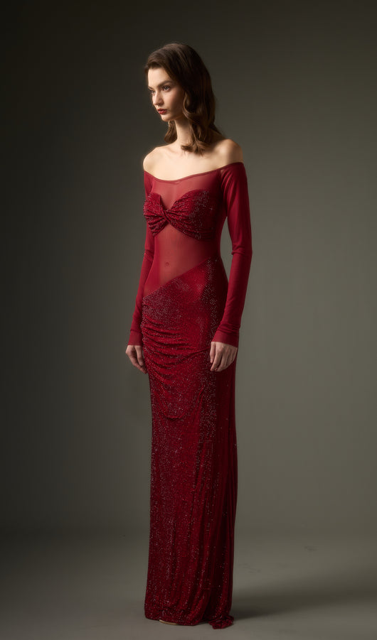 فستان ماكسي مكشوف الكتفين من ديامانتي - أحمر