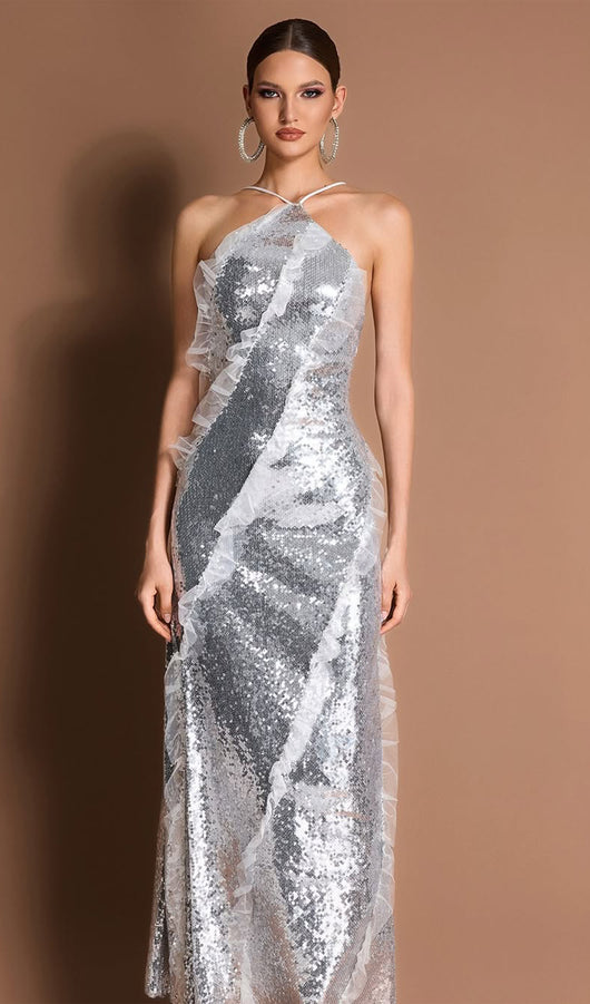 يبلغ طول الموديل 5'5" ويرتدي مقاس XS.