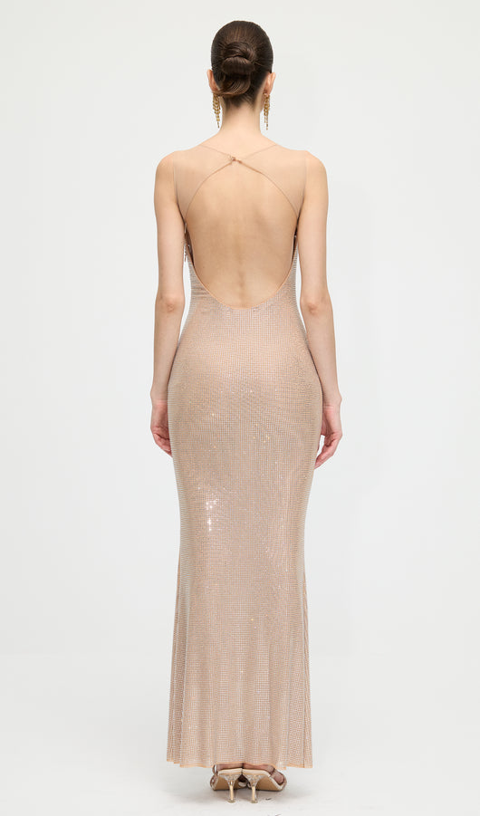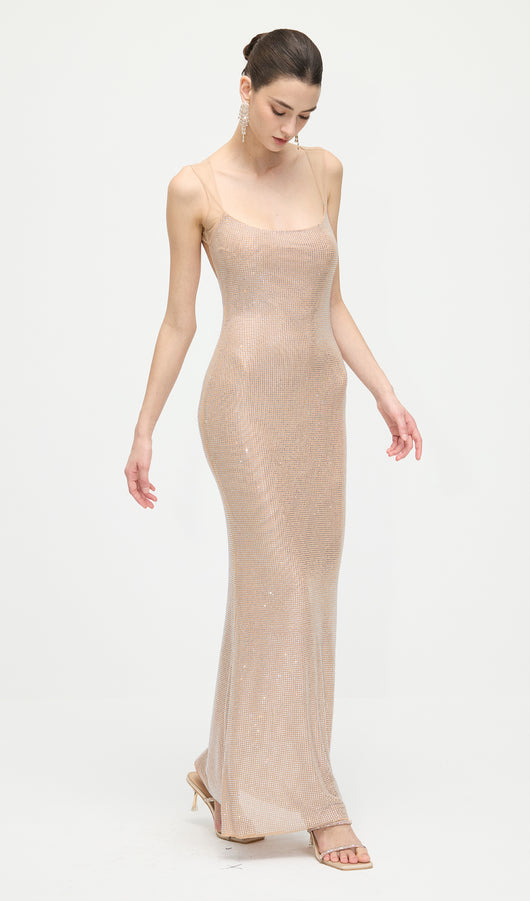 فستان ماكسي هوت فيكس مع ظهر شبكي