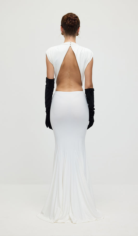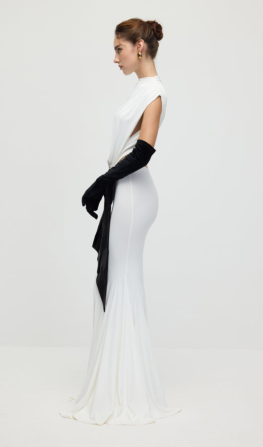 فستان ماكسي بتصميم ذيل السمكة بلون الماهوجني