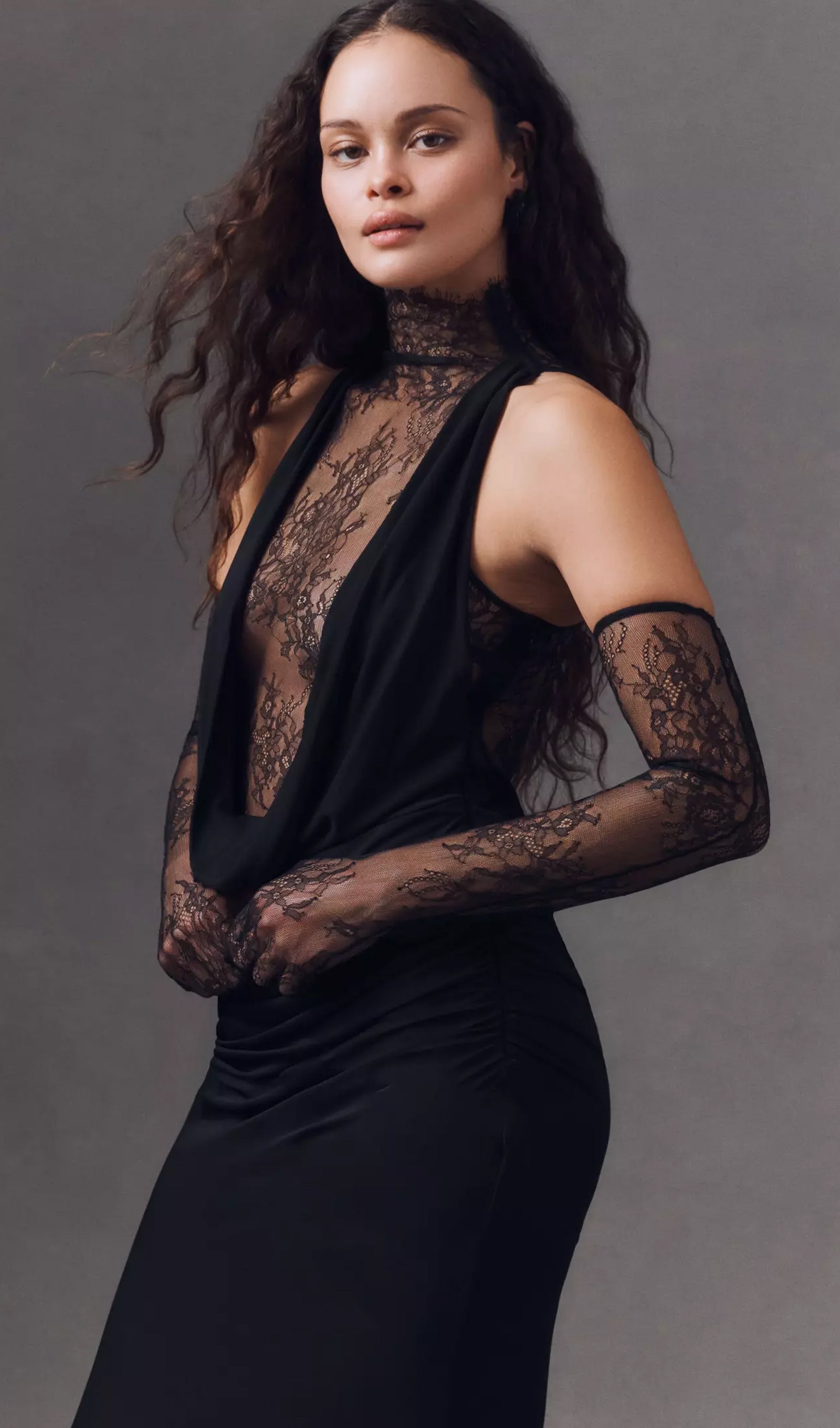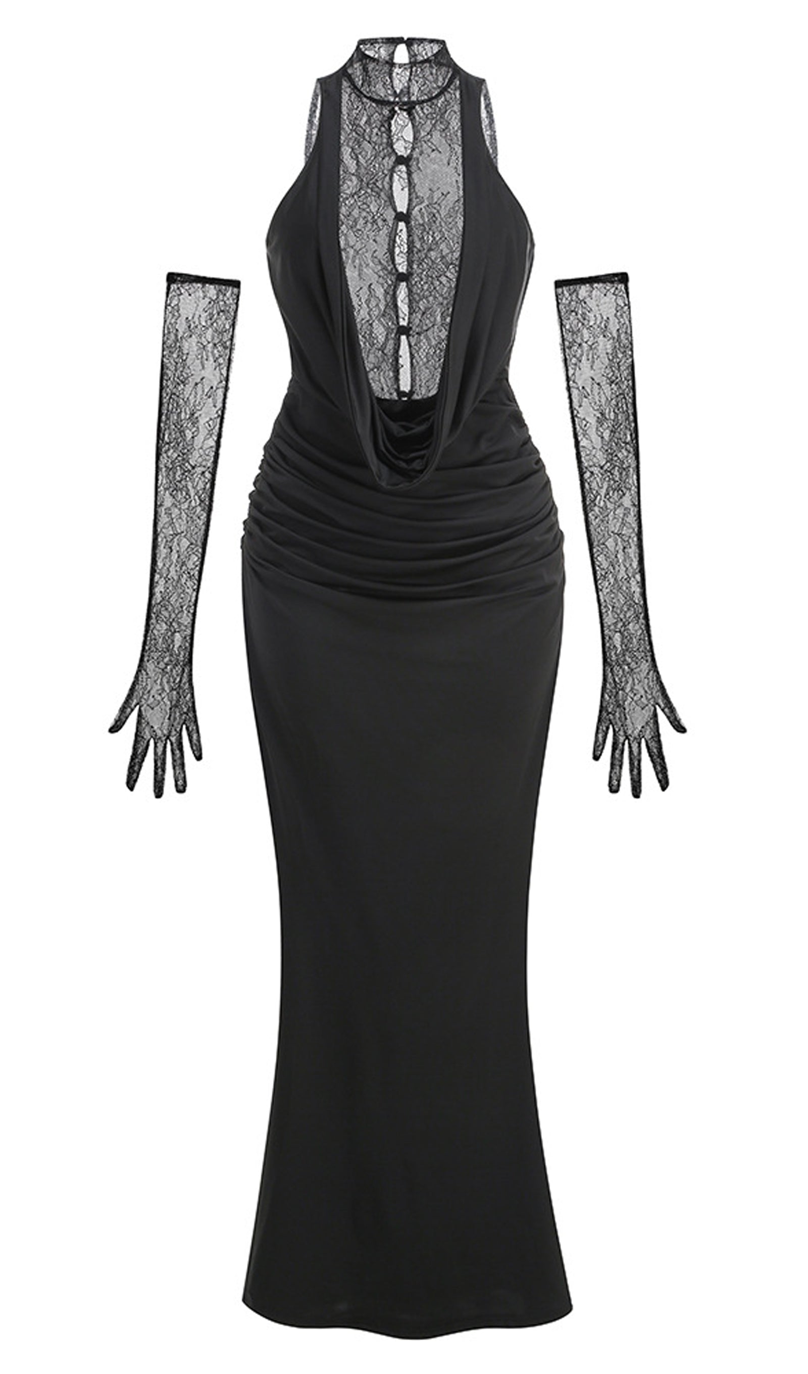 يتميز هذا الفستان بفتحة رقبة واسعة وتصميم داخلي بدون حمالات مع طبقة شبكية أنيقة، ليجمع بسلاسة بين الأناقة والجاذبية. تُضفي الكشكشة عند الخصر من الأمام والخلف لمسةً من الأناقة على إطلالتكِ، مما يضمن لكِ إطلالةً أنيقة ومريحة. تُضفي التنورة الشبكية المنسدلة سحرًا خلابًا، بينما يوفر الصدر المبطن الراحة والتغطية. مثالي للمناسبات الرسمية أو الخاصة، يتميز هذا الفستان بطوله الطويل الذي يُضفي عليه لمسةً من الأناقة والرقي، مما يجعله خيارًا مثاليًا لأمسيات ساحرة.