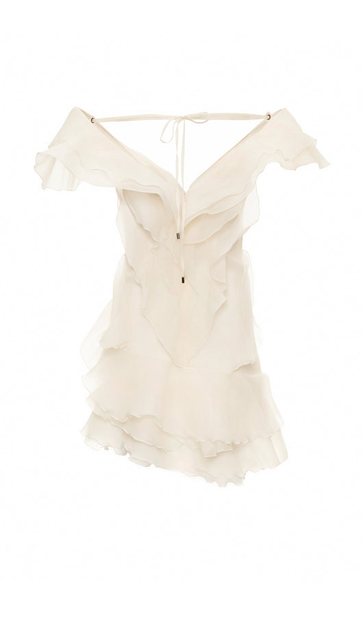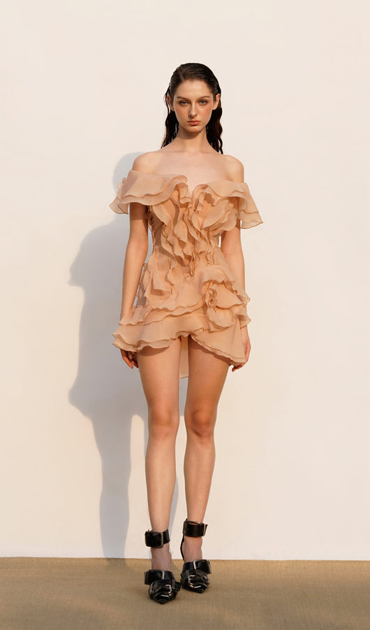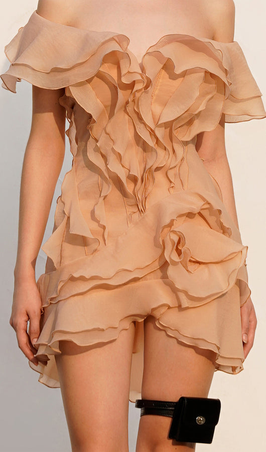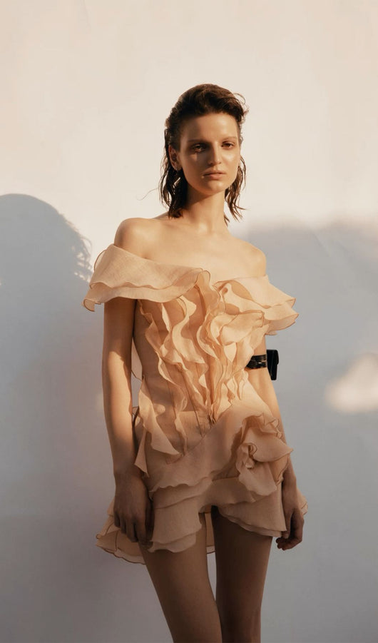 يتميز هذا الفستان بفتحة رقبة واسعة وتصميم داخلي بدون حمالات مع طبقة شبكية أنيقة، ليجمع بسلاسة بين الأناقة والجاذبية. تُضفي الكشكشة عند الخصر من الأمام والخلف لمسةً من الأناقة على إطلالتكِ، مما يضمن لكِ إطلالةً أنيقة ومريحة. تُضفي التنورة الشبكية المنسدلة سحرًا خلابًا، بينما يوفر الصدر المبطن الراحة والتغطية. مثالي للمناسبات الرسمية أو الخاصة، يتميز هذا الفستان بطوله الطويل الذي يُضفي عليه لمسةً من الأناقة والرقي، مما يجعله خيارًا مثاليًا لأمسيات ساحرة.