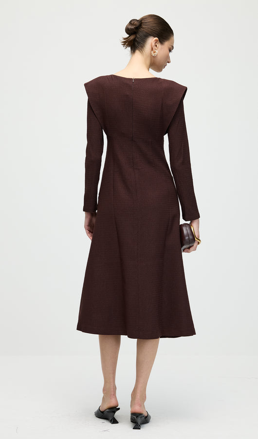يبلغ طول الموديل 5'5" ويرتدي مقاس XS.