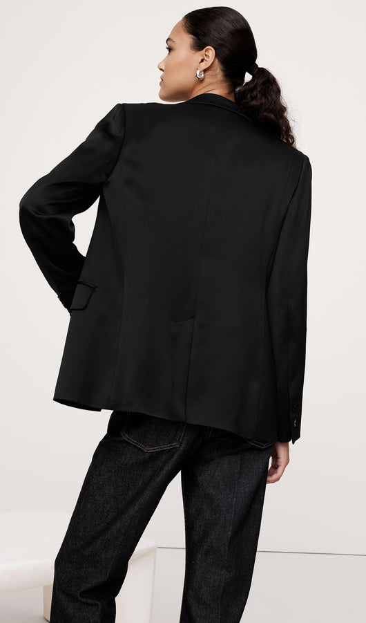 يبلغ طول الموديل 180 سم/5'10 ويرتدي المقاس S.