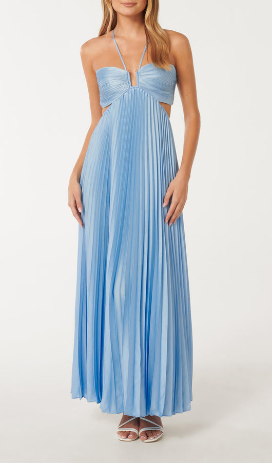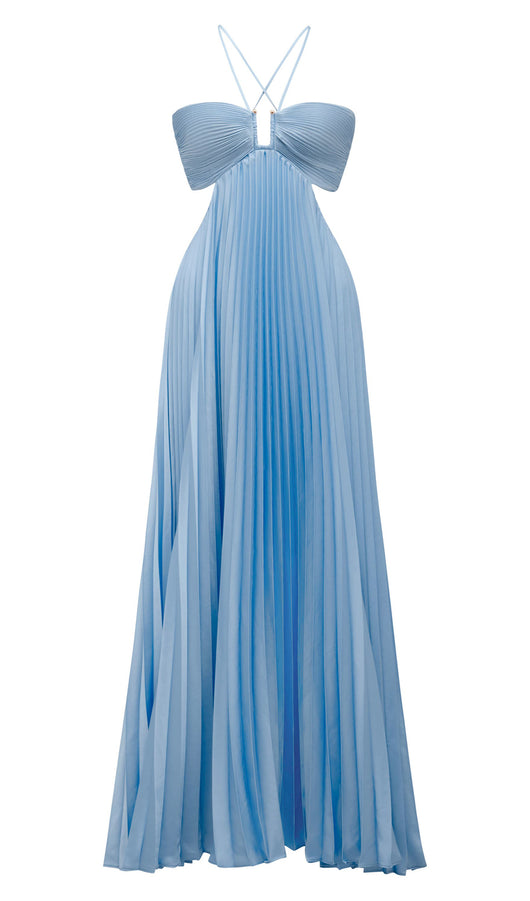 فستان ماكسي أنيق بدون أكتاف - أزرق فاتح