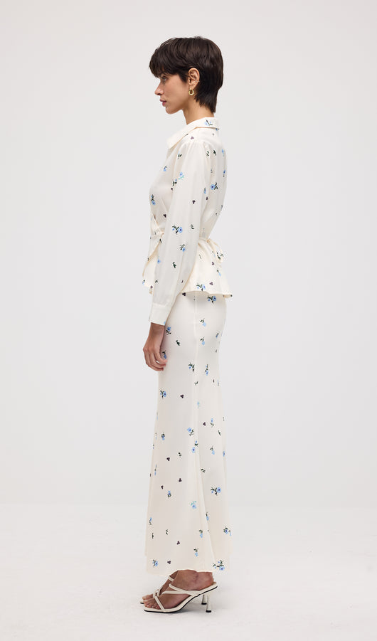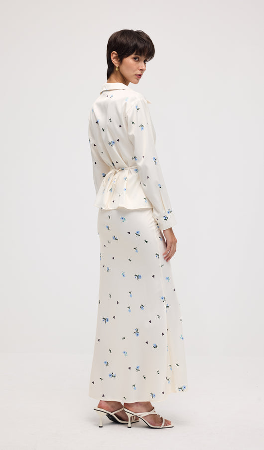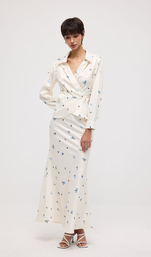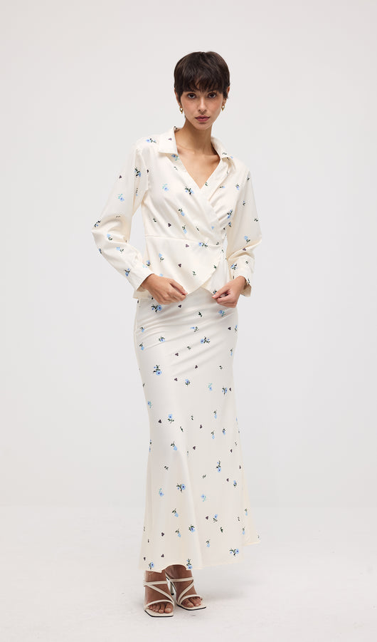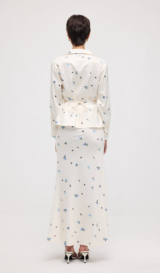 Midikleid in A-Linie mit Blumenmuster und Laternenärmeln