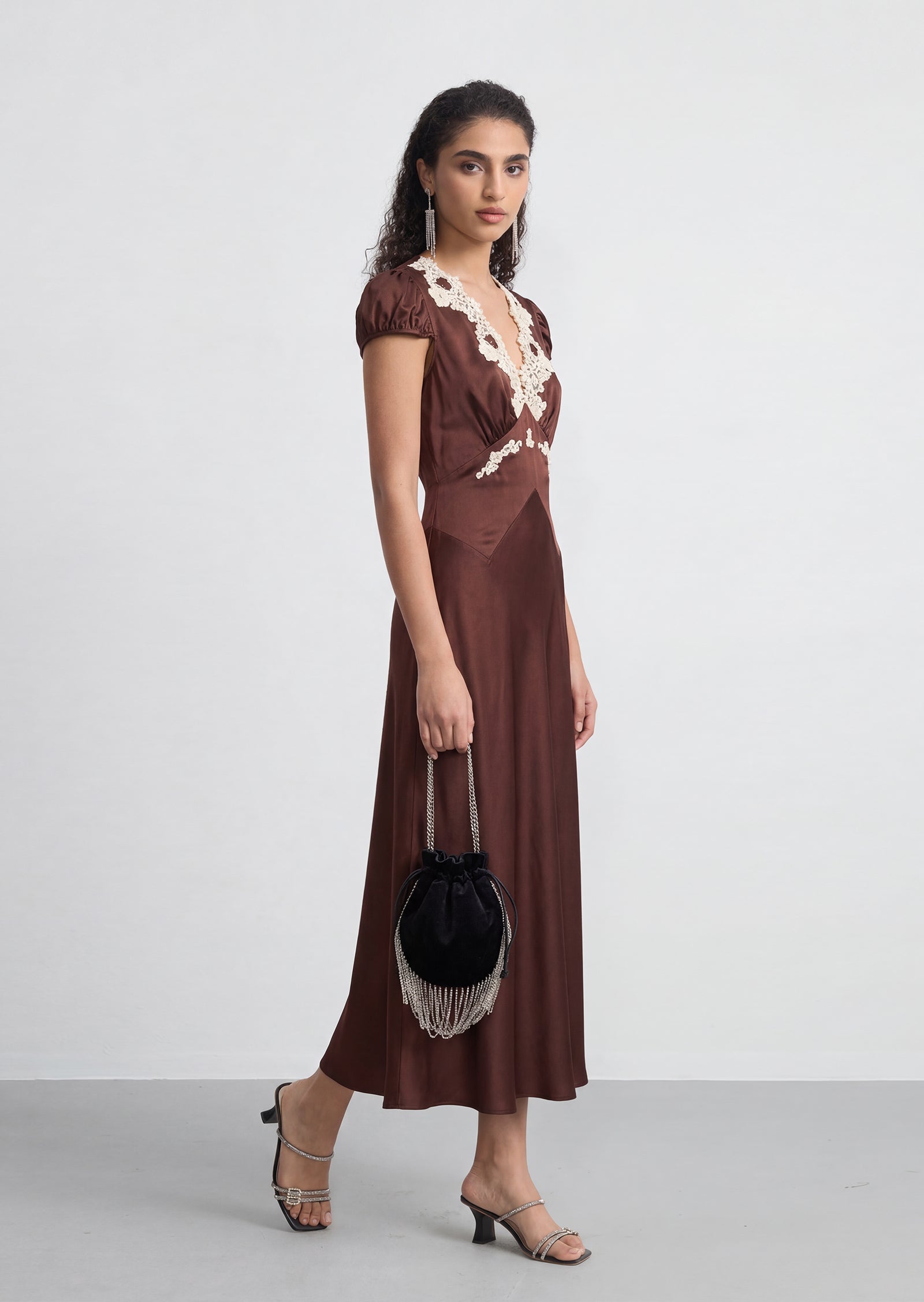 Midikleid in A-Linie mit Blumenmuster und Laternenärmeln