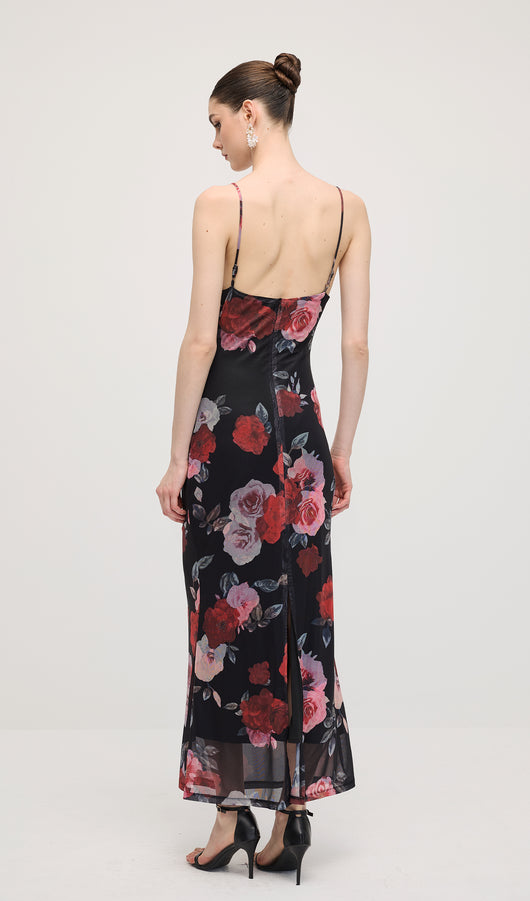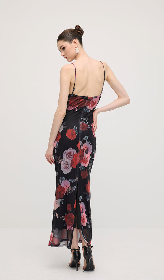 Midikleid in A-Linie mit Blumenmuster und Laternenärmeln