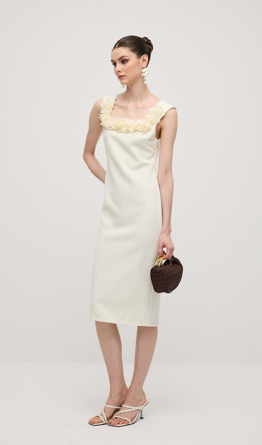 Midikleid in A-Linie mit Blumenmuster und Laternenärmeln