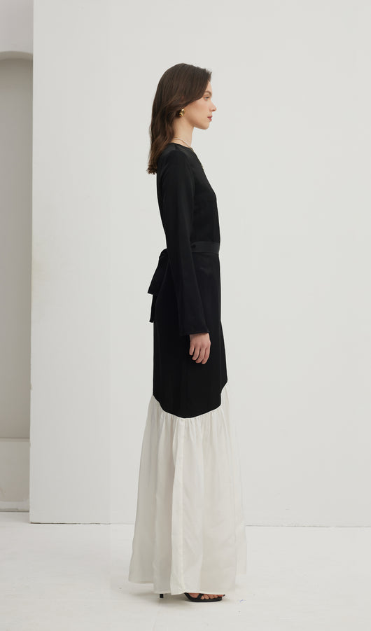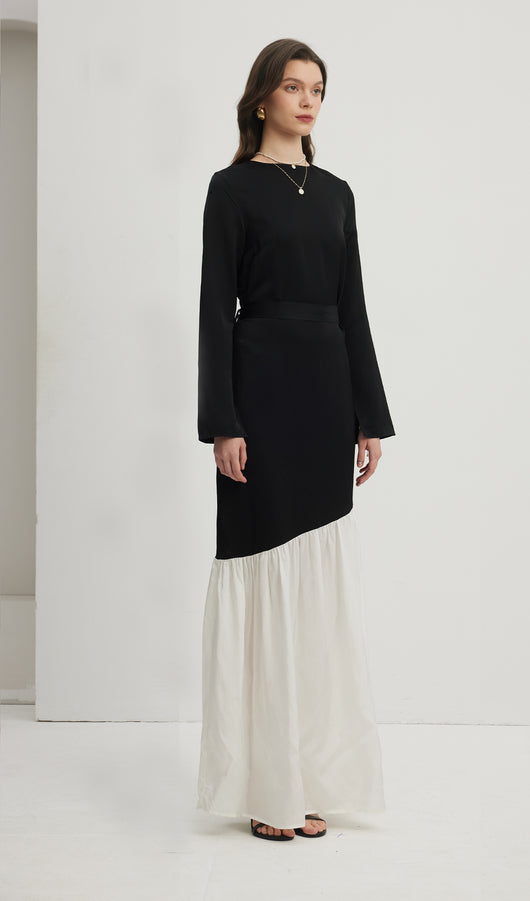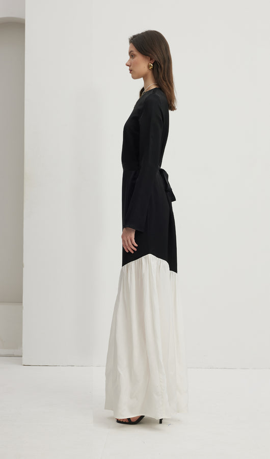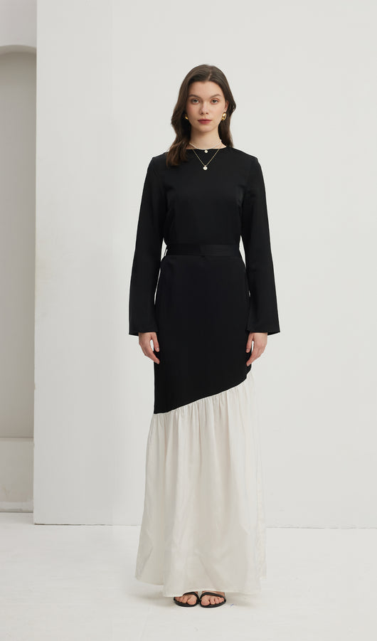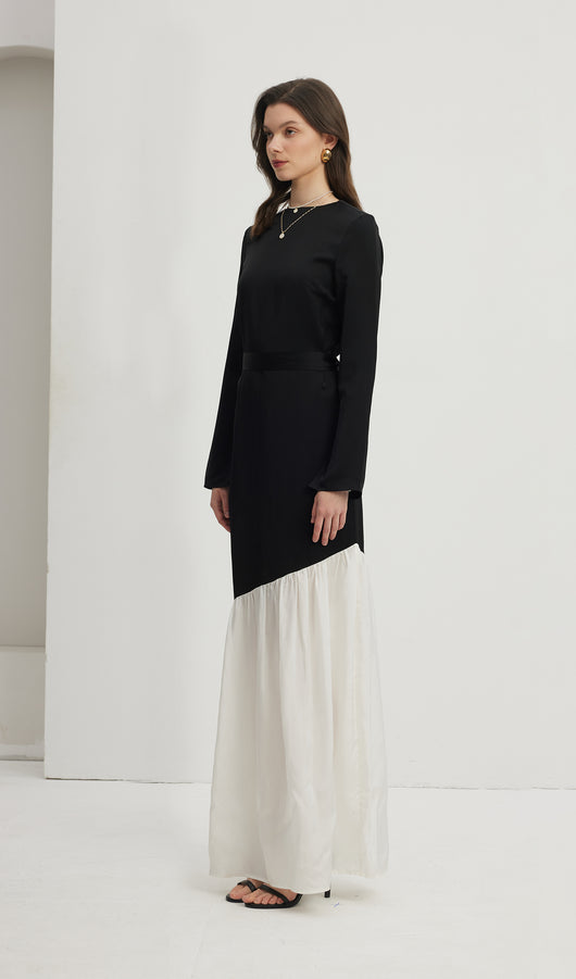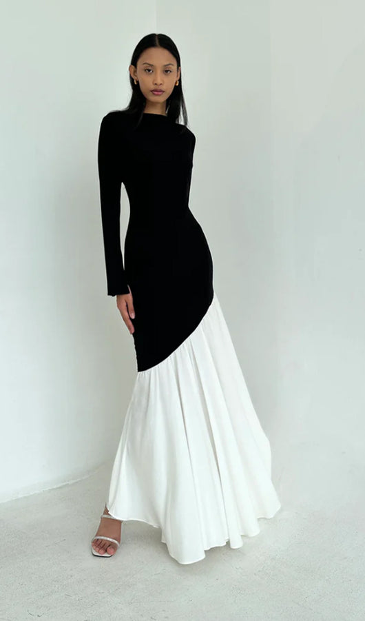 Asymmetrical Black/White Colorblock Maxi Dress