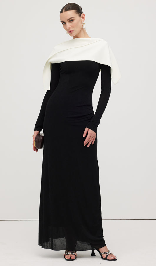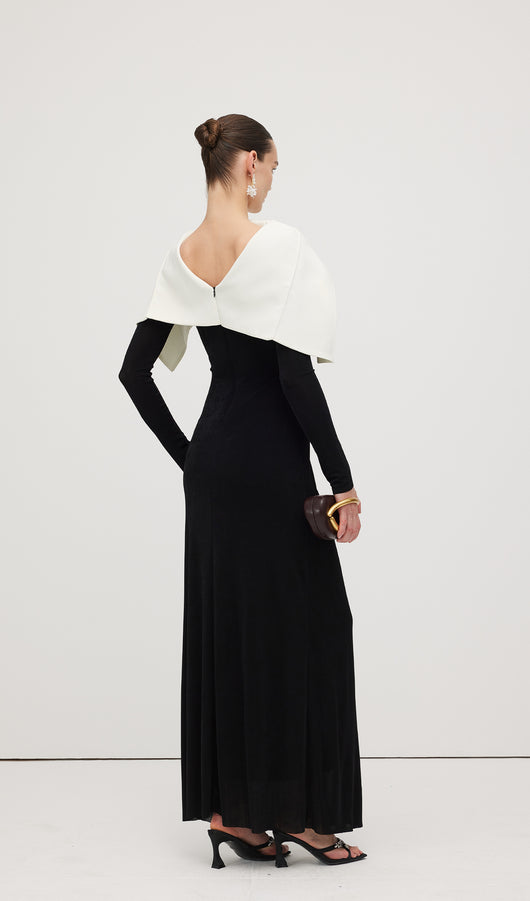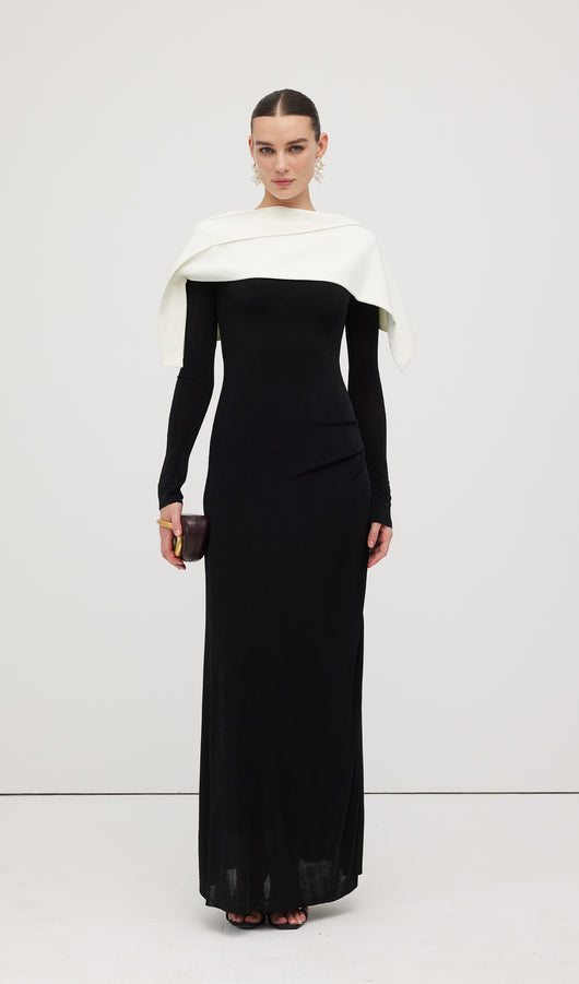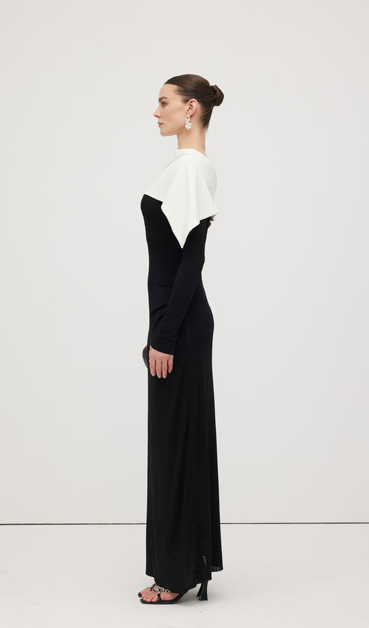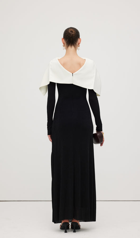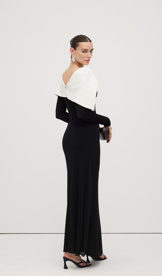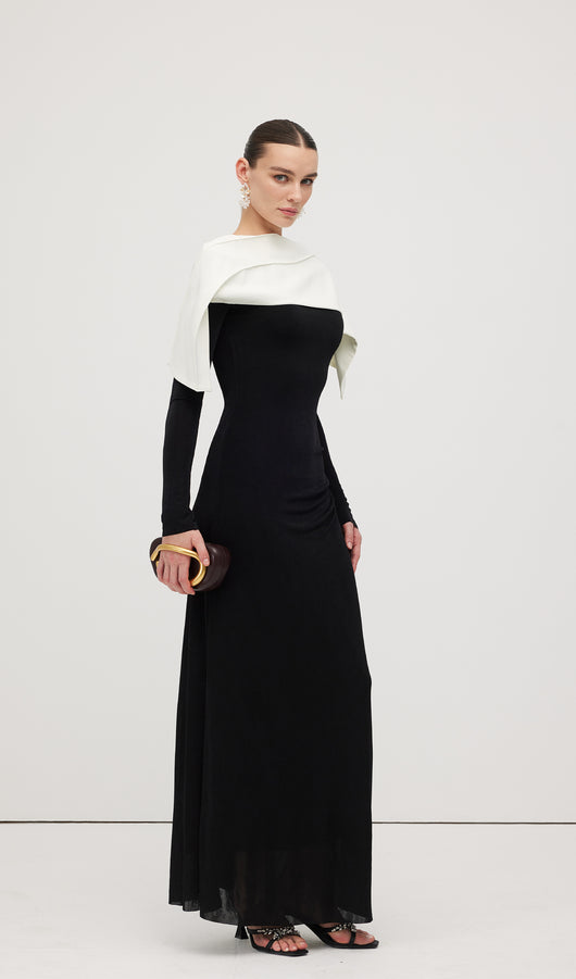 Asymmetrical Draped Shoulder Pleat Maxi Dress