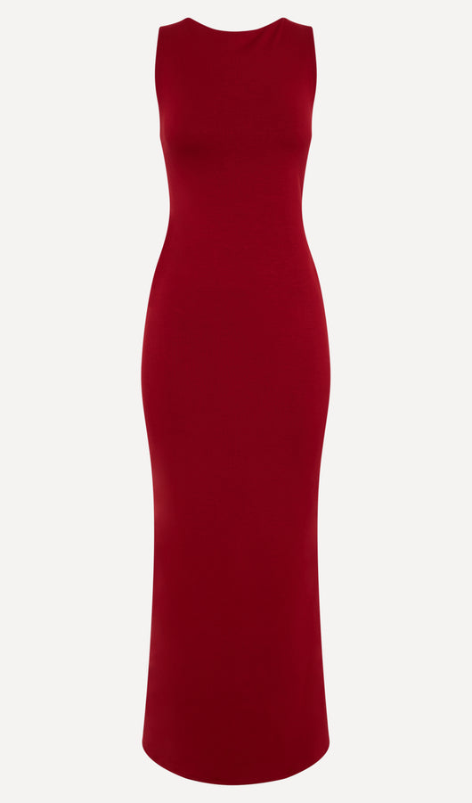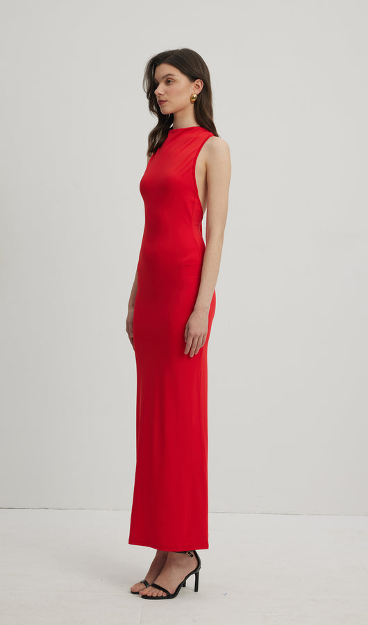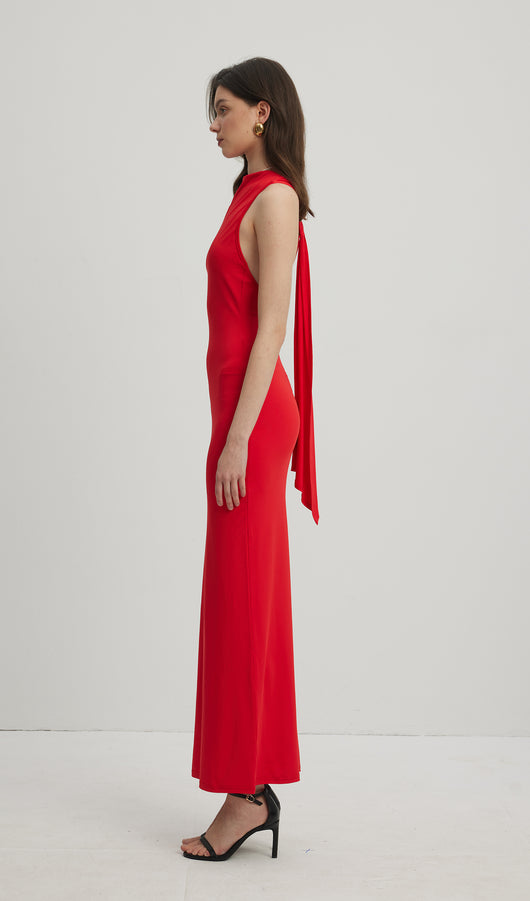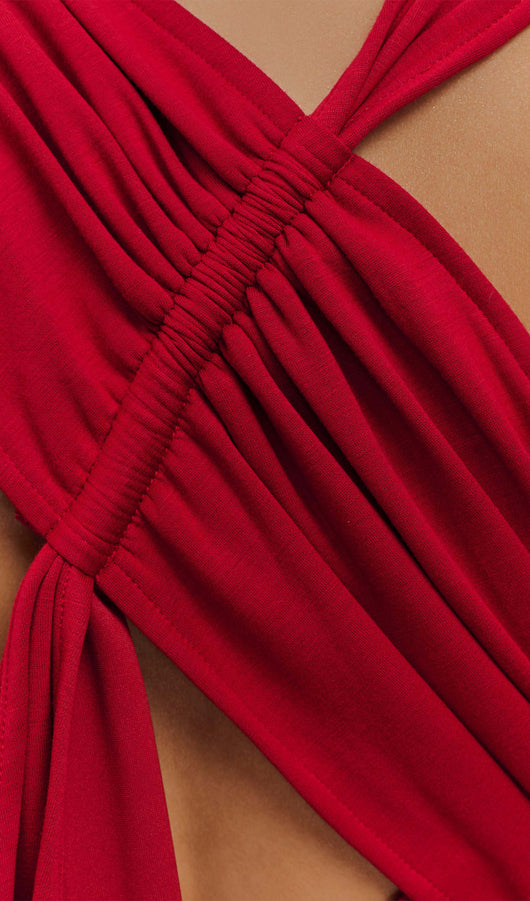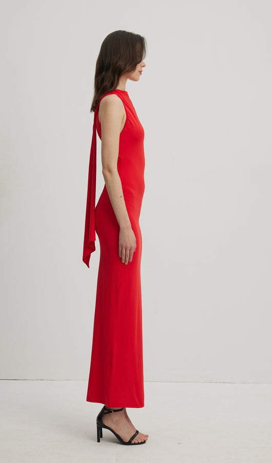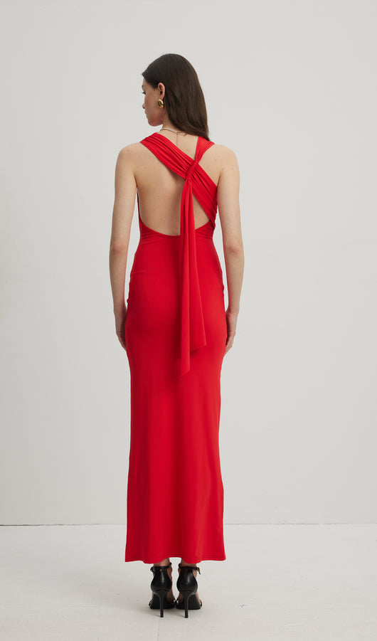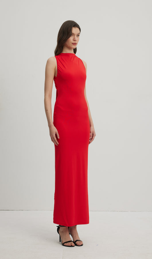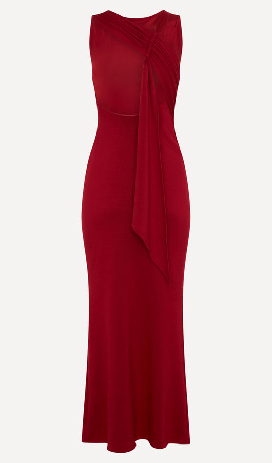 Asymmetrical Scuba Jersey Maxi Dress Ruby