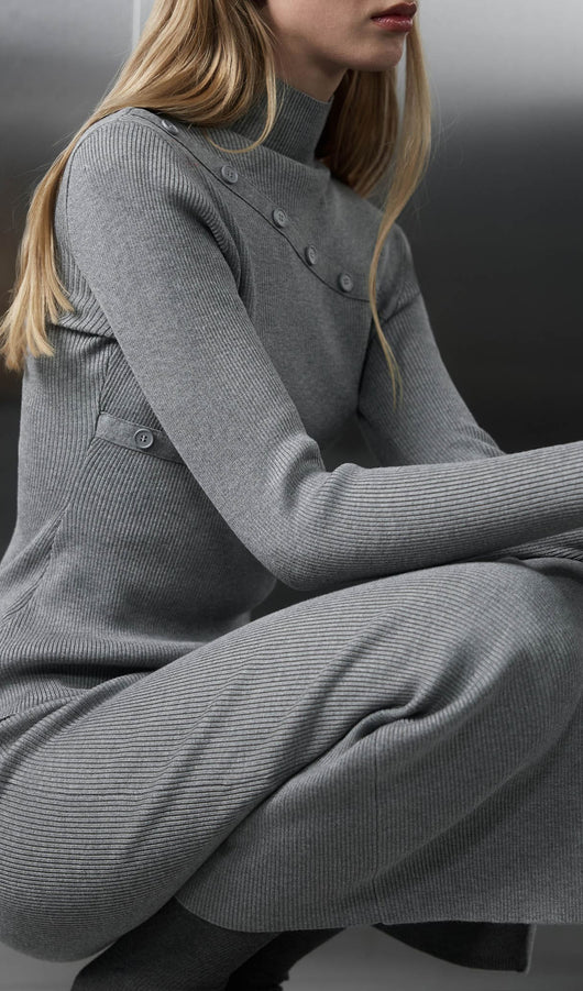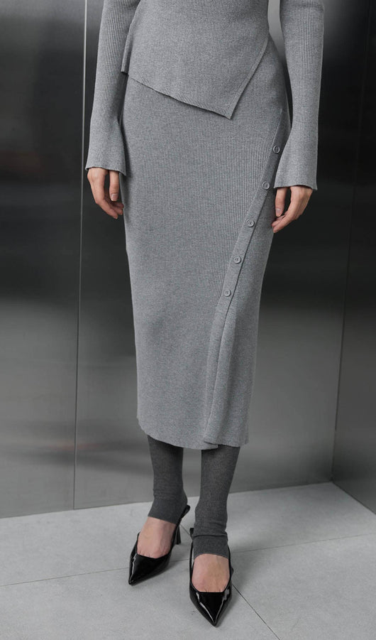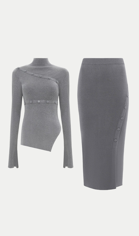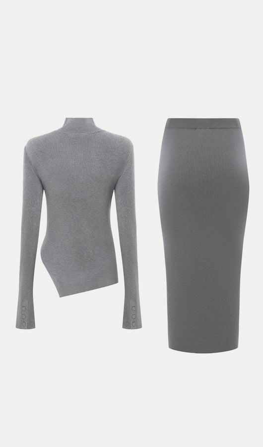 Asymmetrical Top & Maxi Skirt With Side Slit Set Grey