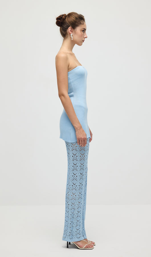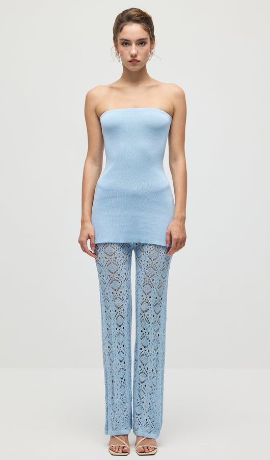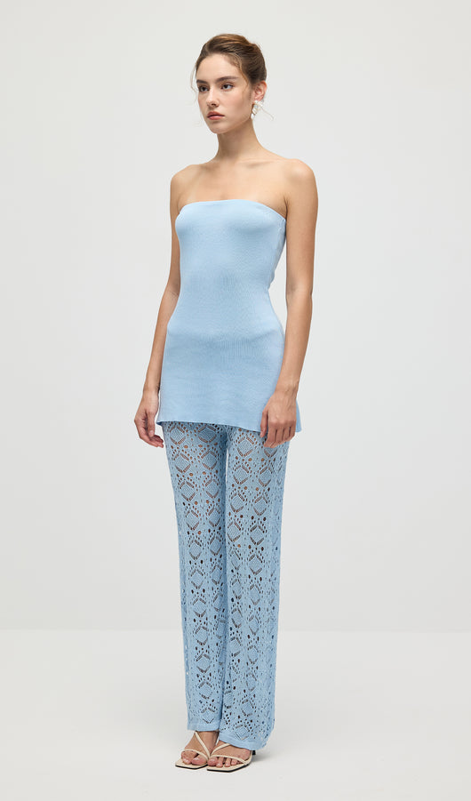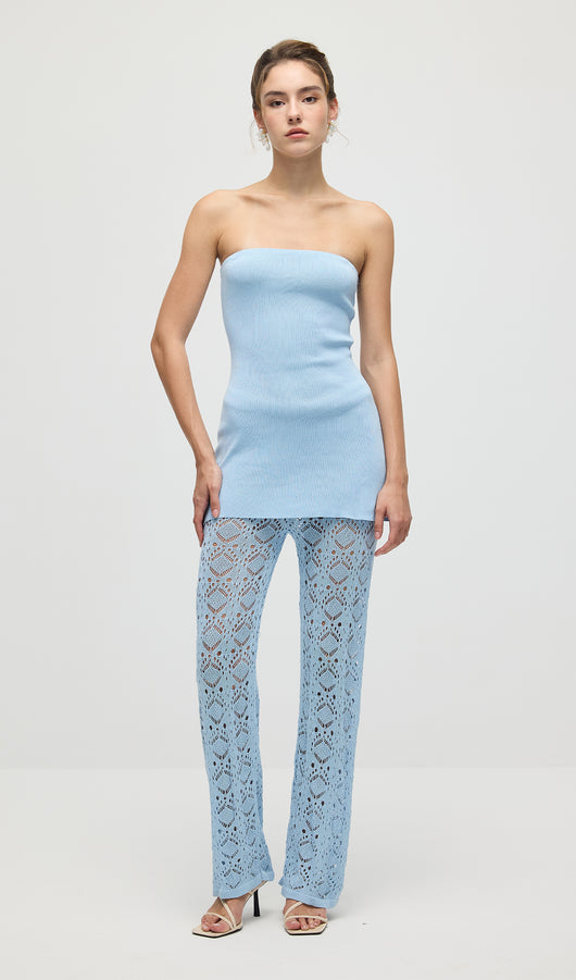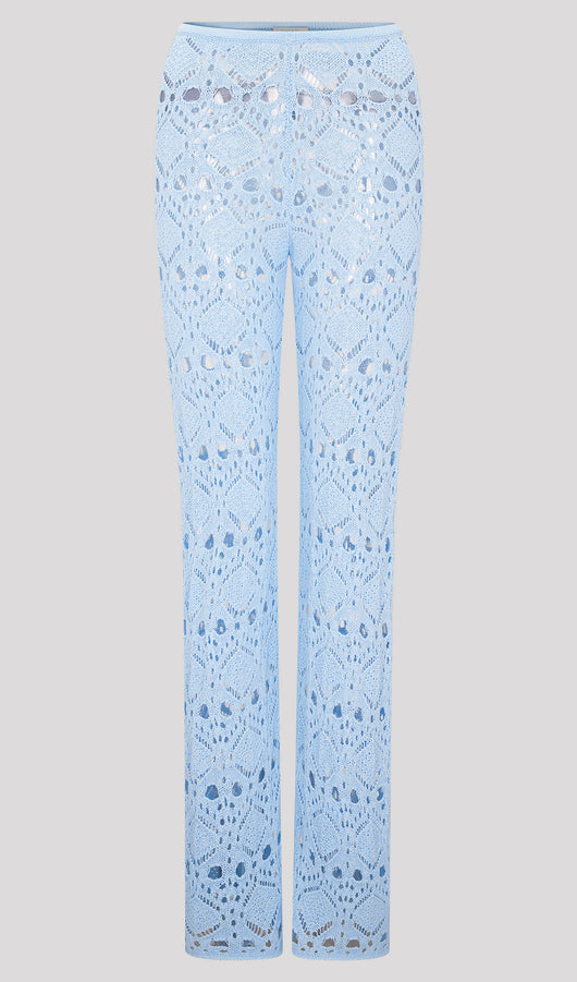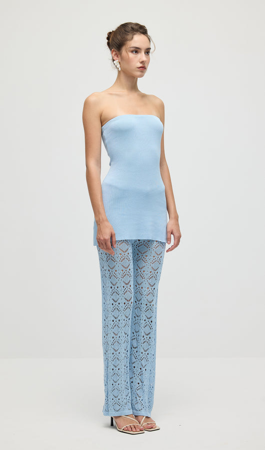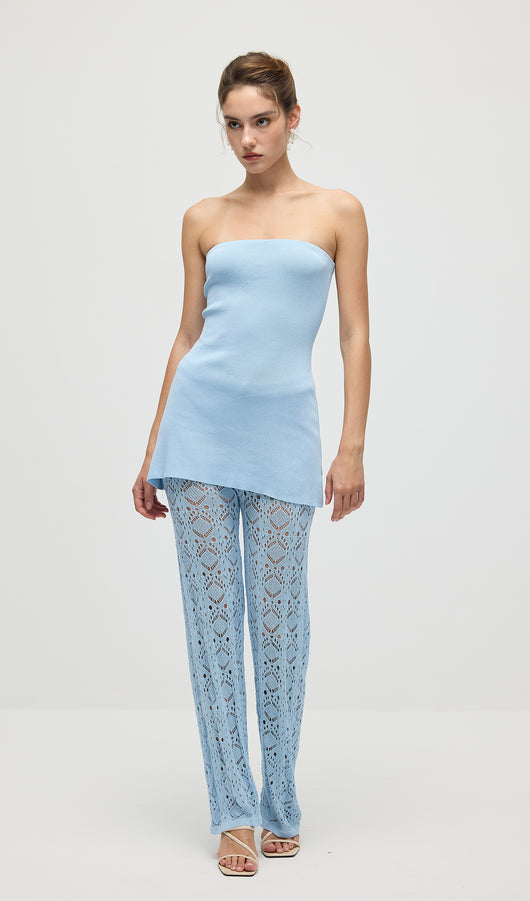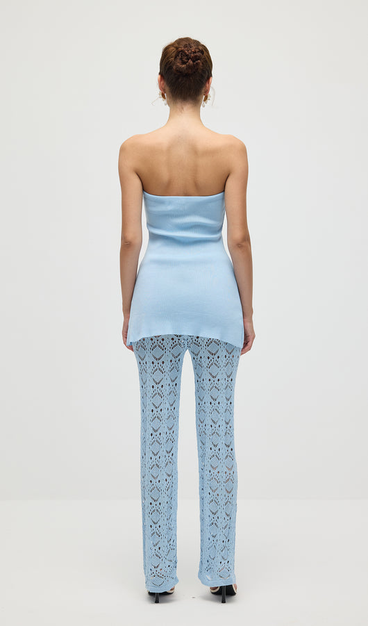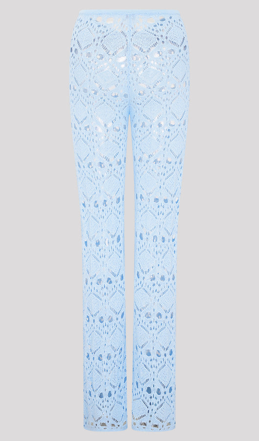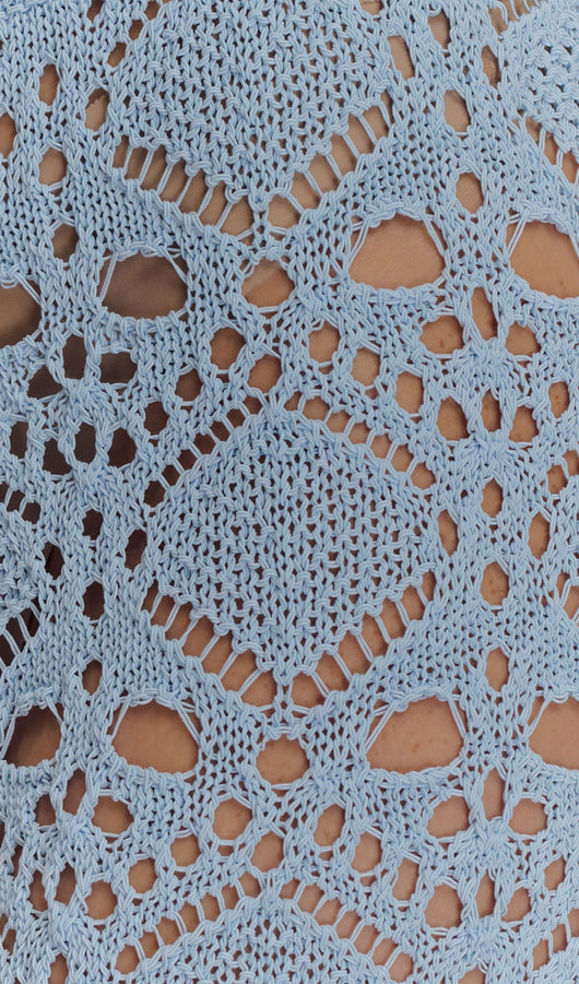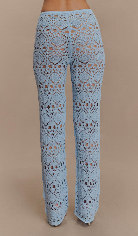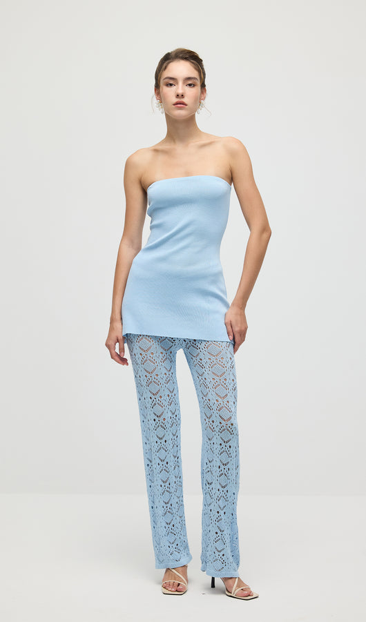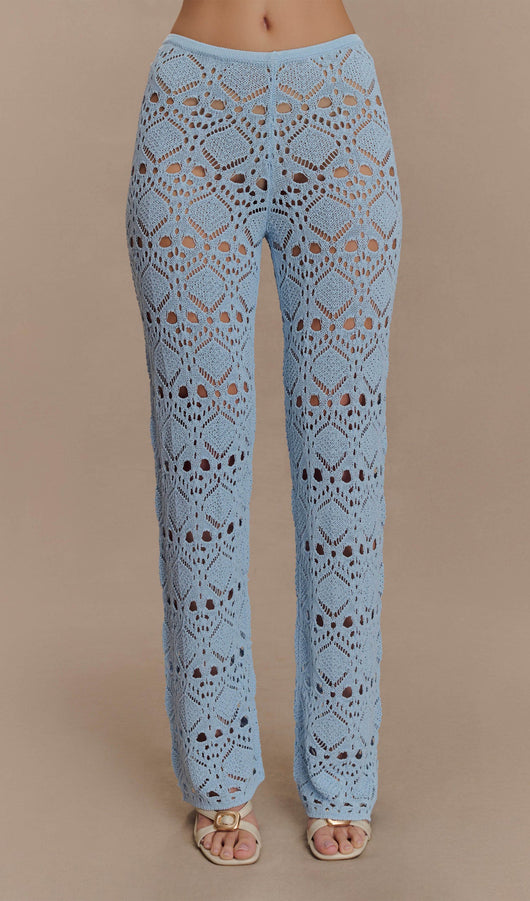 Bandage Knit Top & Crochet Knit Pants In Blue