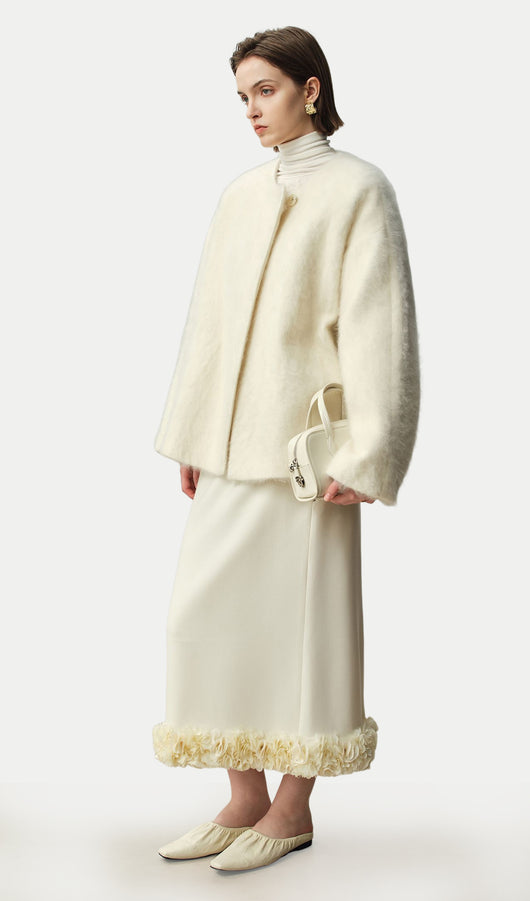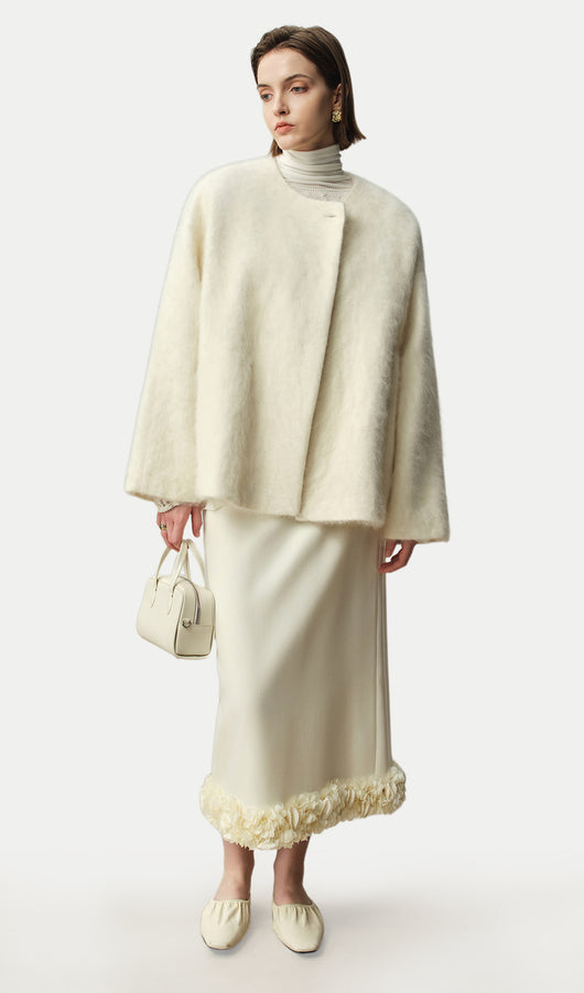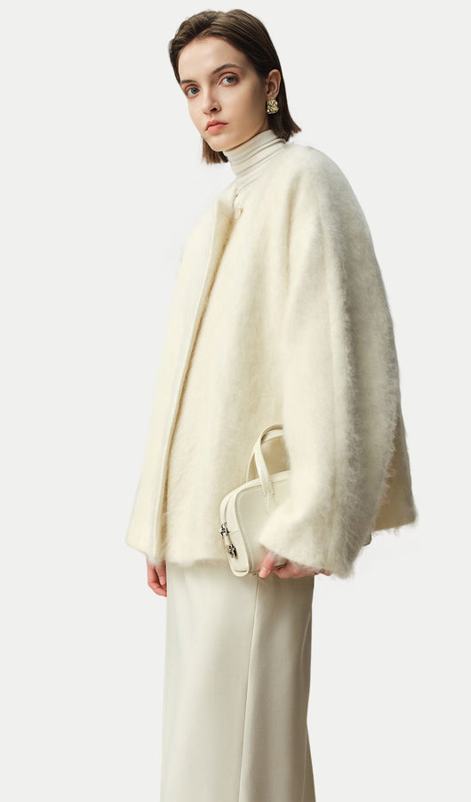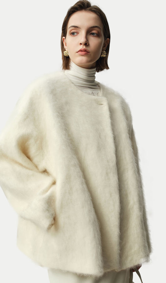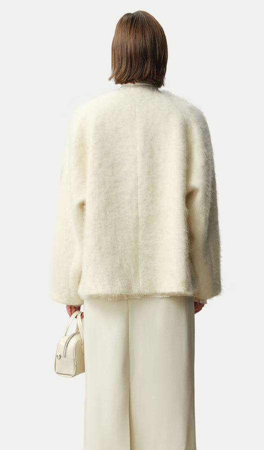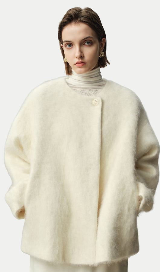 Boxy Brushed Wool One-Button Jacket