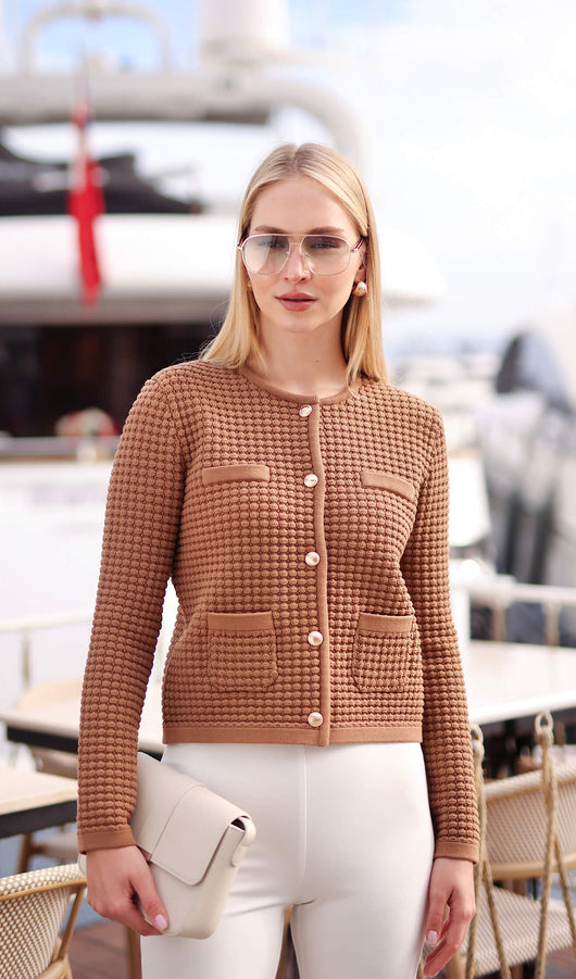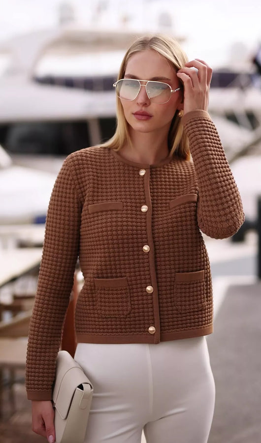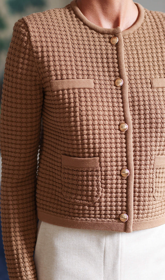Button Down Knit Jacket In Beige