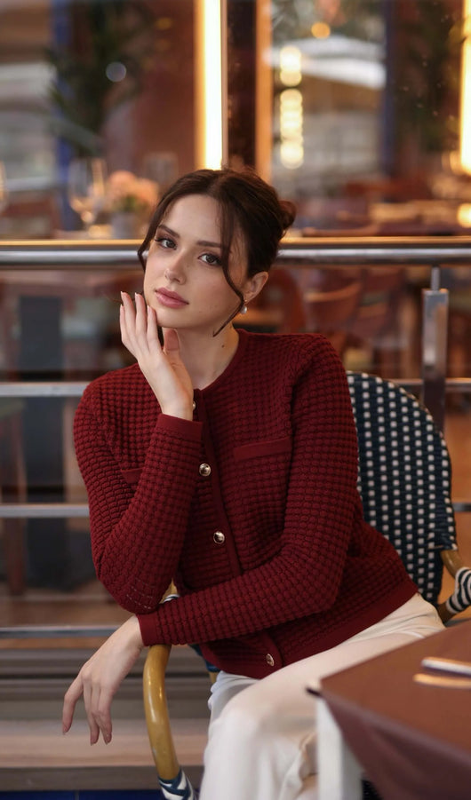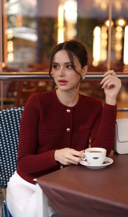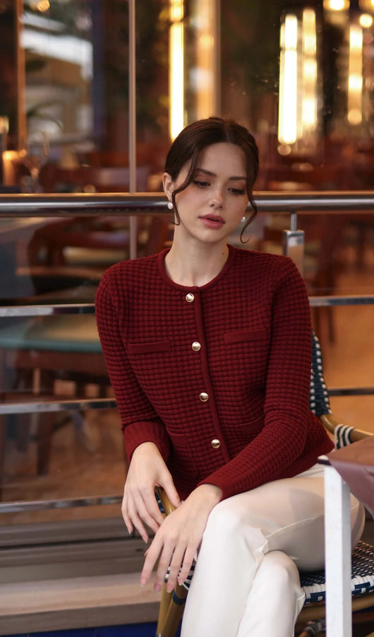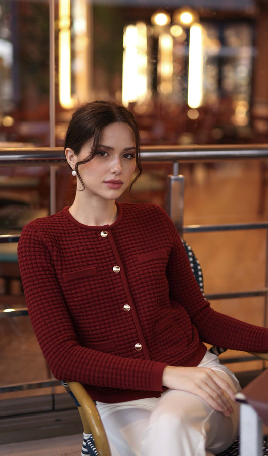 Button Down Knit Jacket In Red