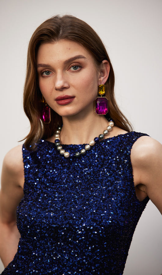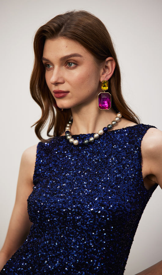 The Sequin Mini dress – Midnight Blue is designed to flatter your body, with expert tailoring that accentuates curves and creates a flattering silhouette. The Blue palette is rich and varied, with deep jewel tones, soft pastels, and bold prints that make a statement.