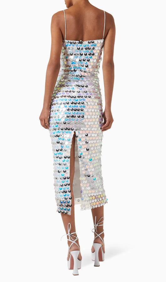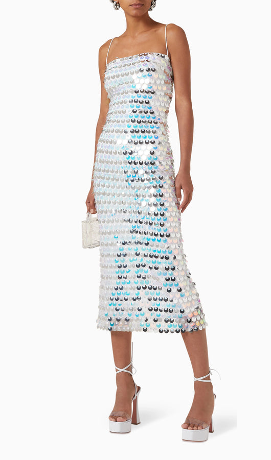 Get ready to turn heads at your next party night with the Midi Dress! This flirty and playful slip dress features a stunning circle sequin design in a gorgeous shade of pink. Made from high-quality polyester, this strapless, sleeveless dress is perfect for showing off your feminine side while staying comfortable all night long. Whether you're hitting the dance floor or enjoying cocktails with friends, this dress will make sure you stand out from the crowd. So why wait? Get ready to shine bright like a diamond in the Midi Dress!