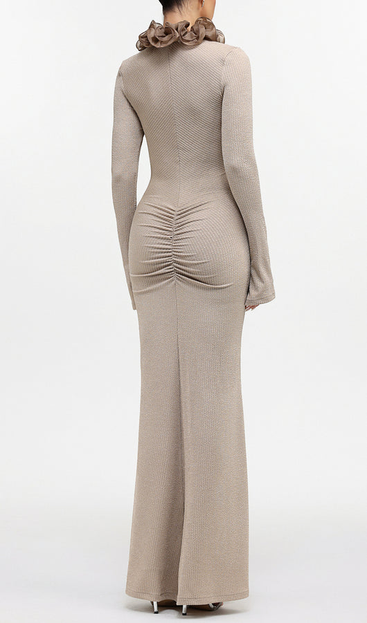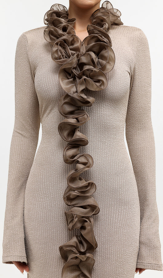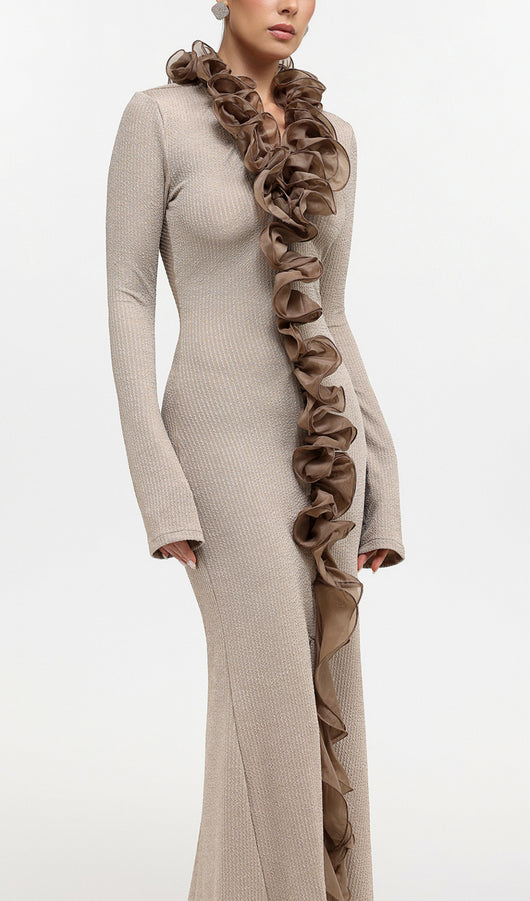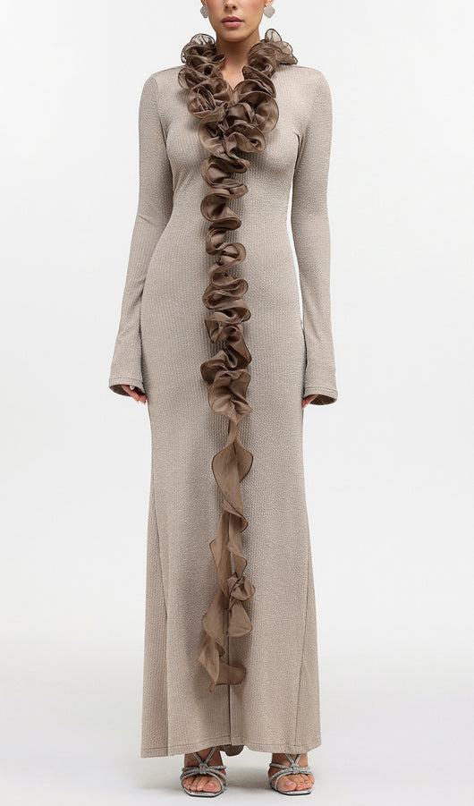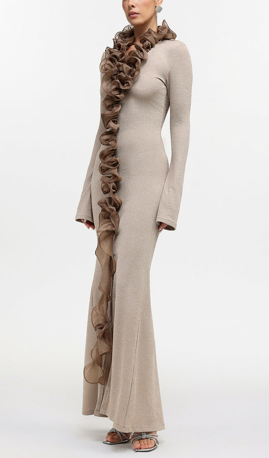 Contour Long Sleeve Ruffle Knit Maxi Dress