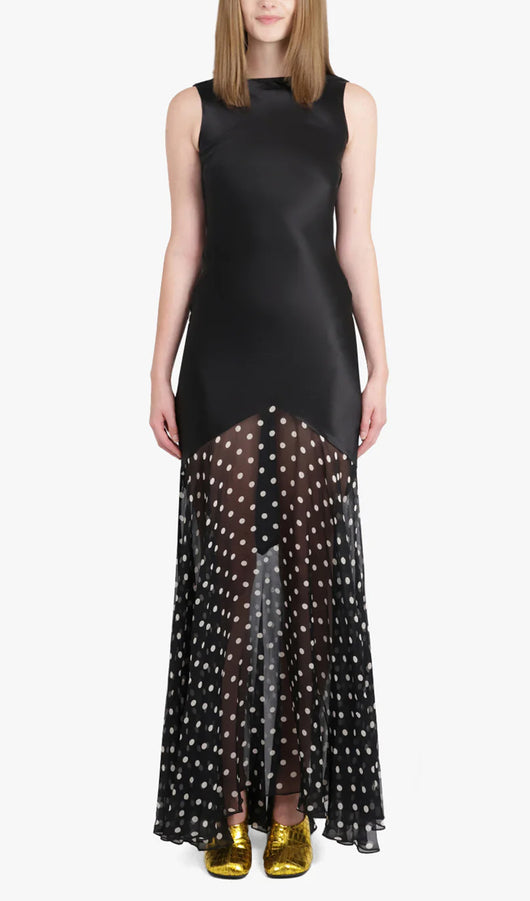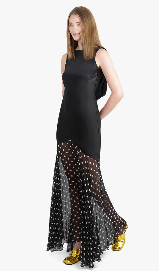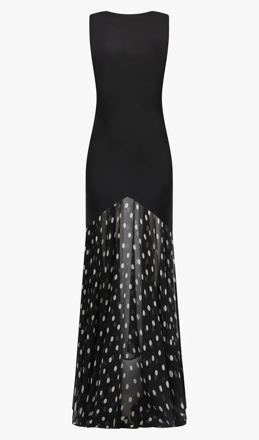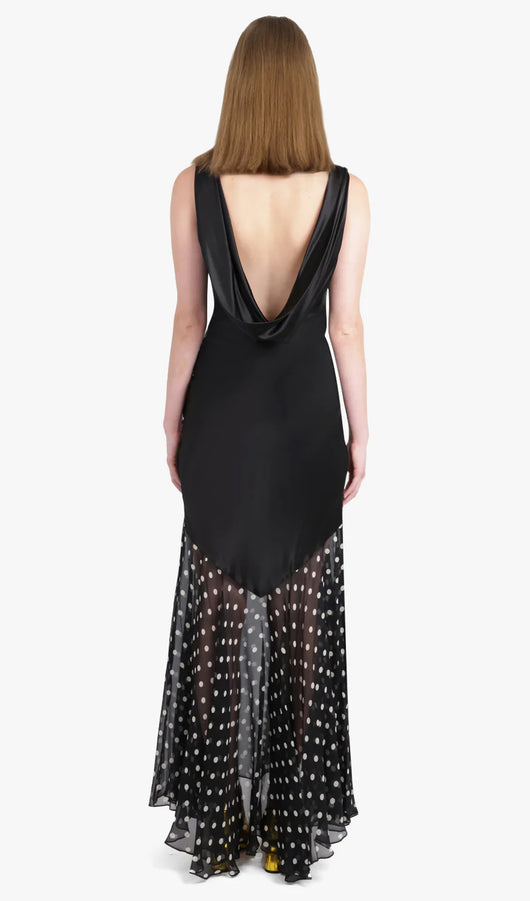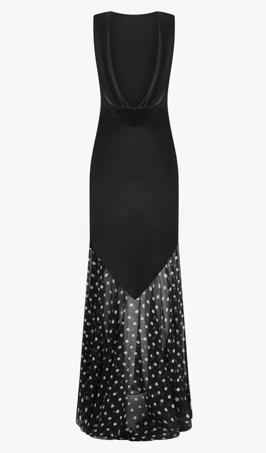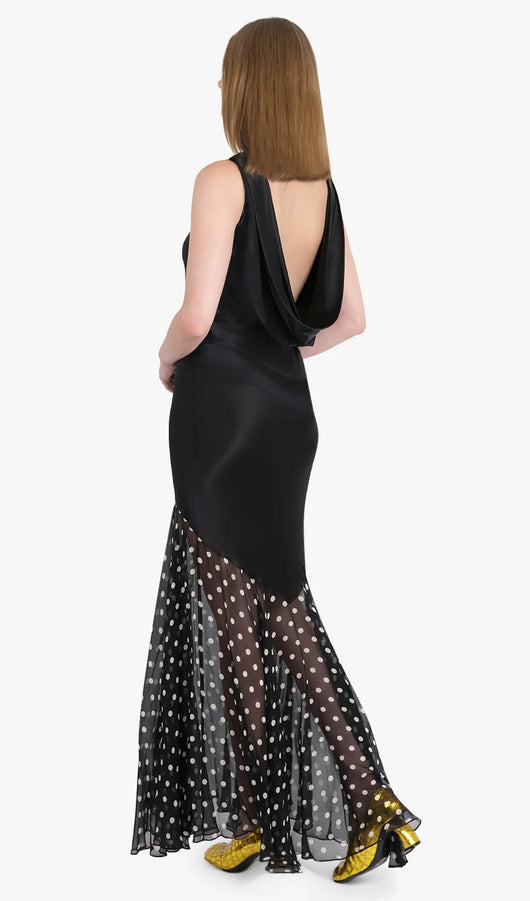 Contrast Polka Dot Mermaid Maxi Backless Dress