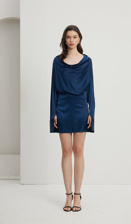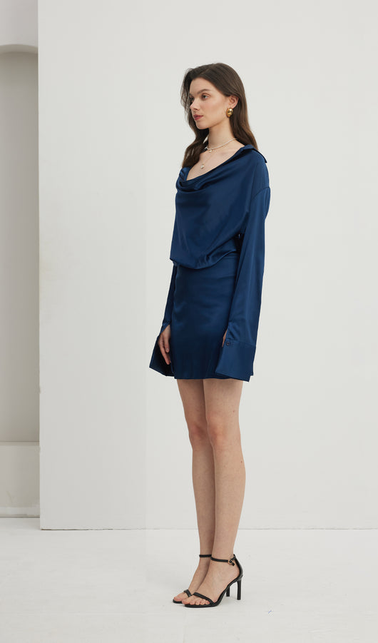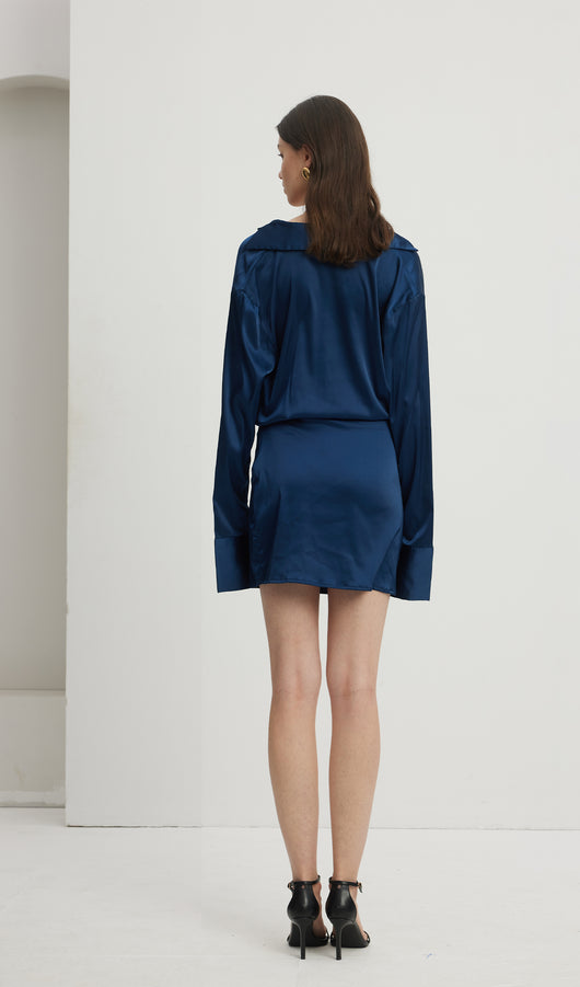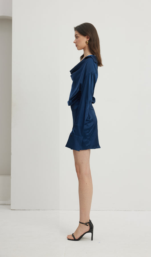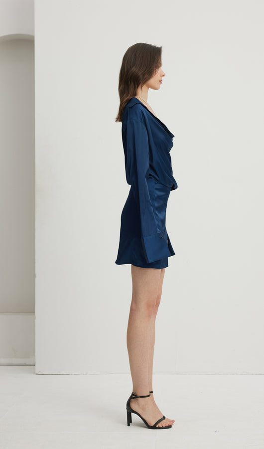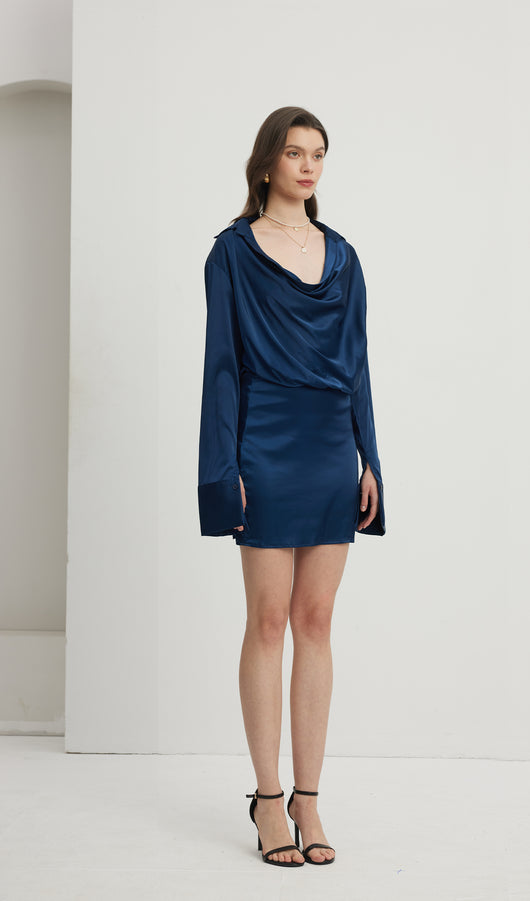Two in one is an opportunity to combine two of your favorite wardrobe items into one. And here is what we got a mini dress with a stylish shirt collar and a figured bottom. Thanks to the original cut and lining, this dress fits perfectly on the figure, and the noble gray-blue shade will add harmony to your image, wherever you are.