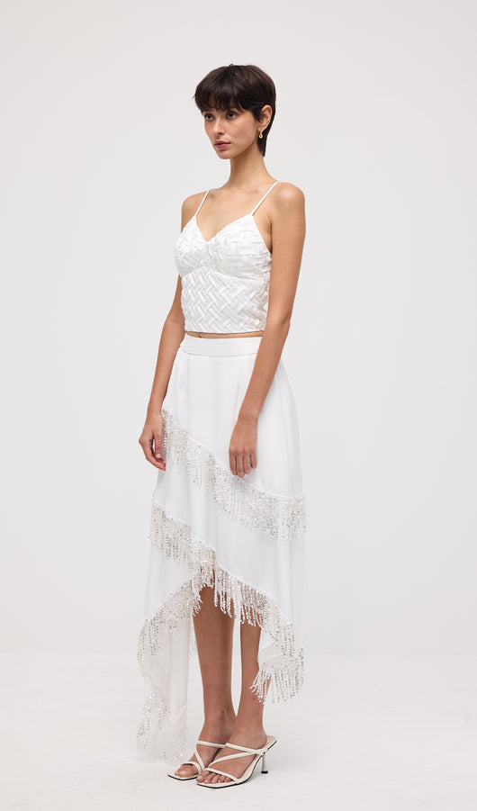 Crop Top & Sequined Tassel Skirt