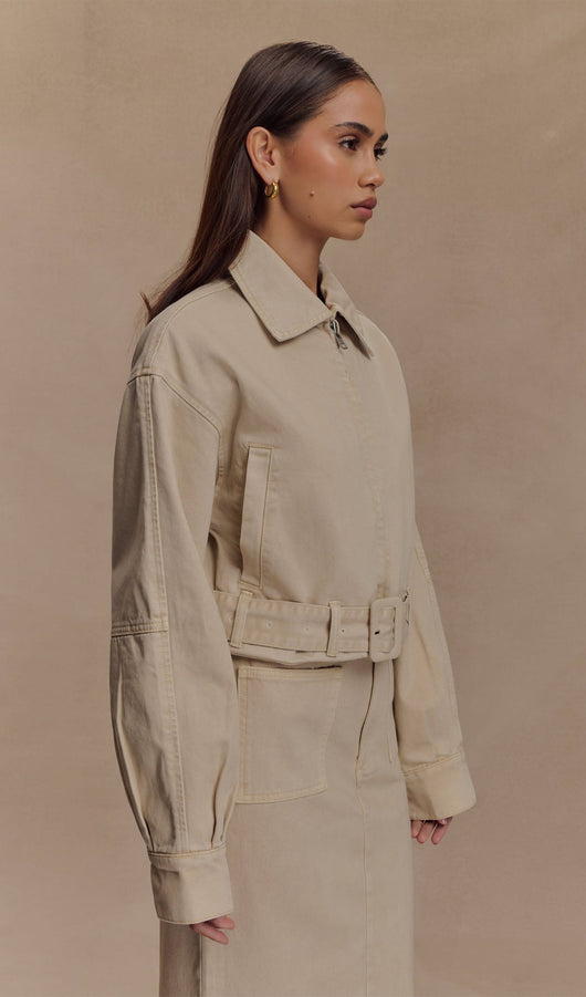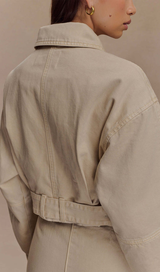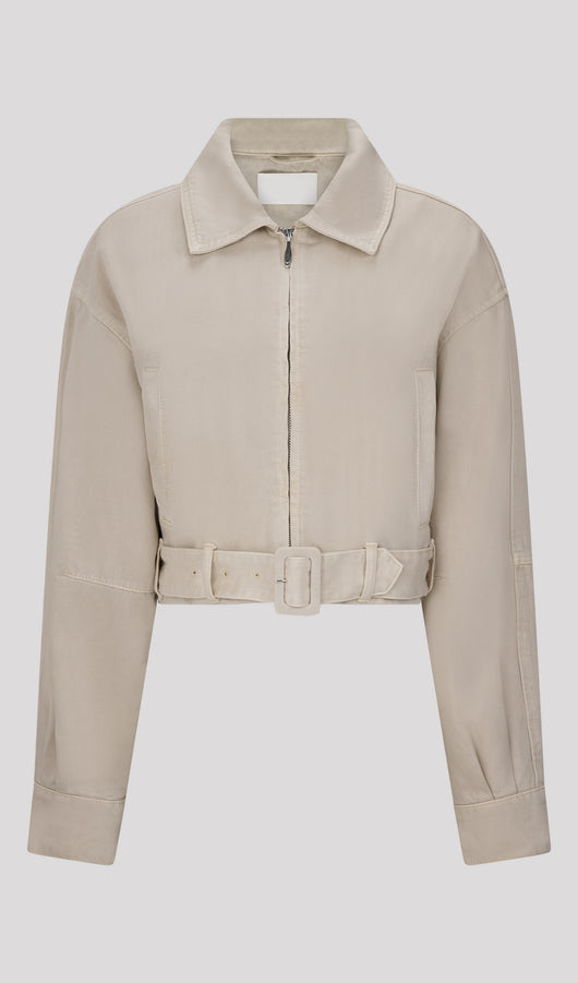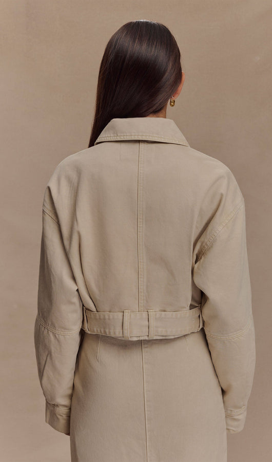 Cropped Denim Jacket In Stone Wash