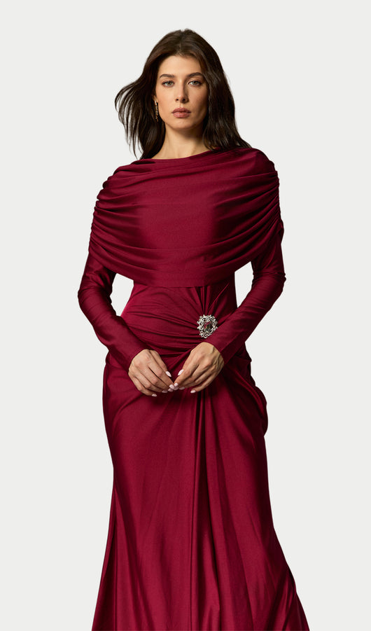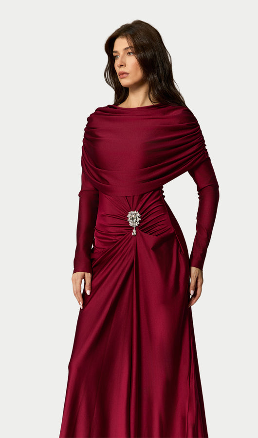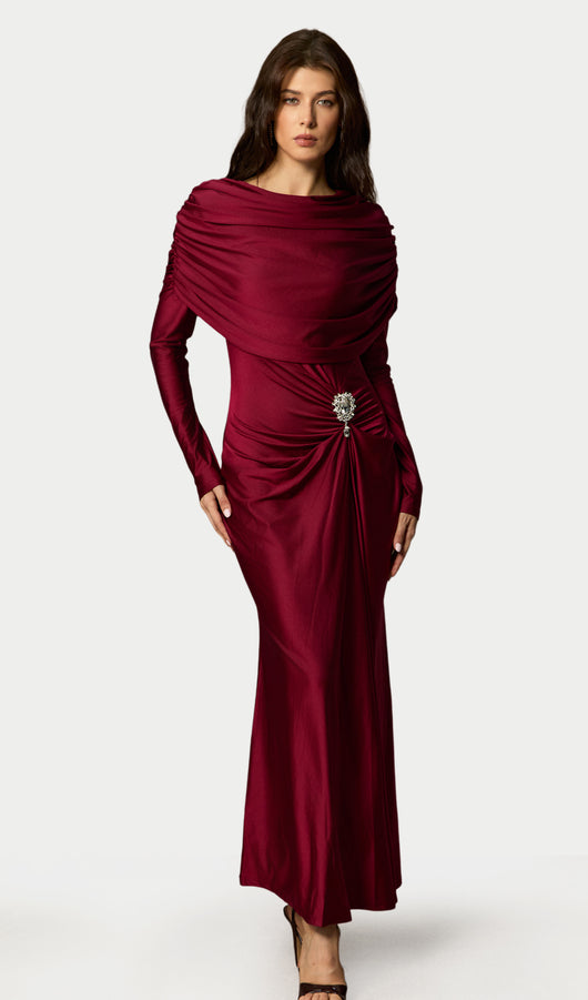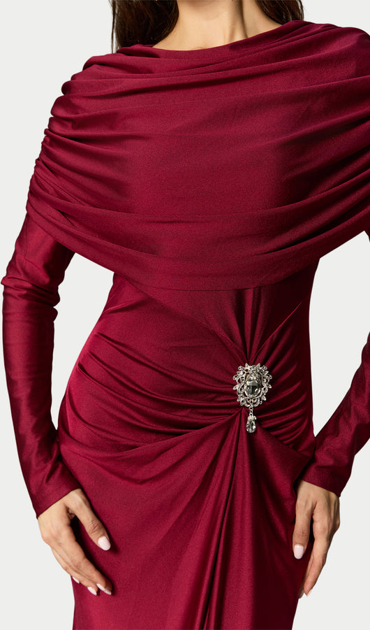 Crystal Accent Ruched Maxi Dress
