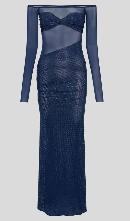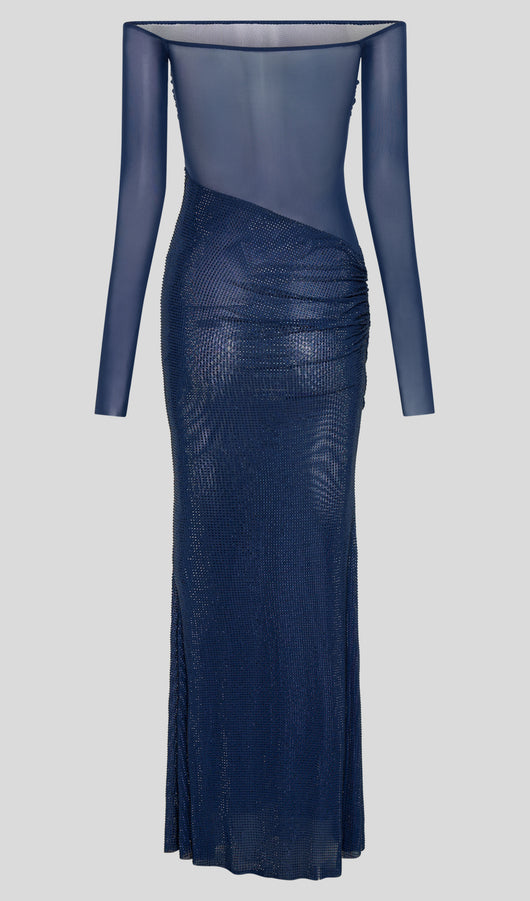 Diamante Off Shoulder Maxi Dress is the perfect blend of glamour and sophistication. Designed with a flattering Bardot neckline and long sleeves, this dress exudes timeless elegance. The mesh fabrication creates a sultry, sheer effect, while the diamante contrast bust adds a touch of sparkle and luxury. A twist front detail elevates the design, and the diamante-adorned skirt brings a stunning shimmer with every step. The asymmetrical waistline, paired with gathering at the hip, enhances your natural curves. Crafted from stretch fabrication, this dress offers both comfort and style, making it a show-stopping choice for any special occasion.