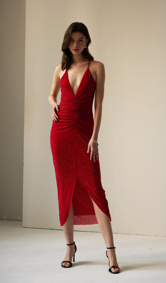 Diamante Ruched Midi Dress