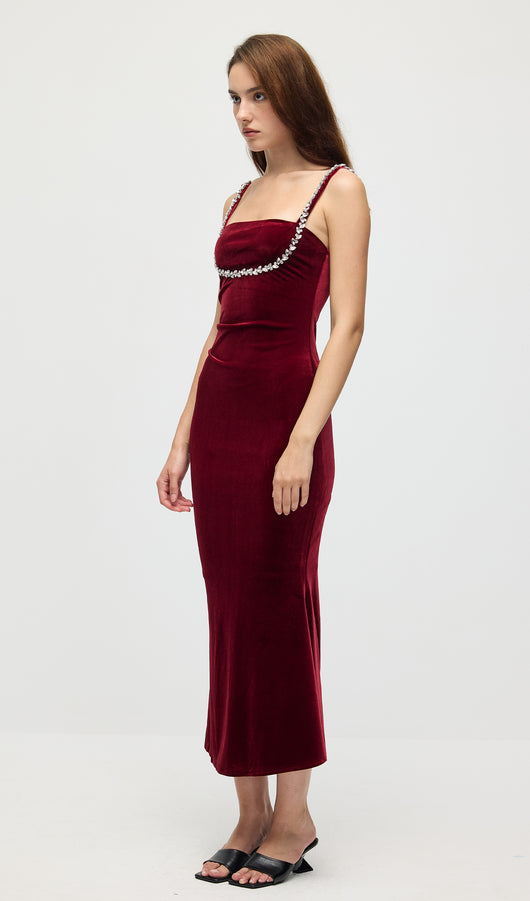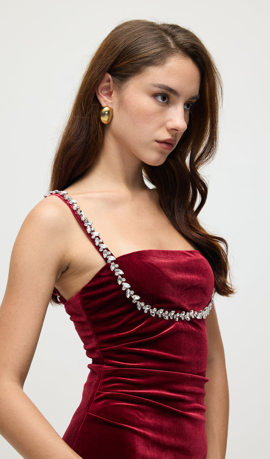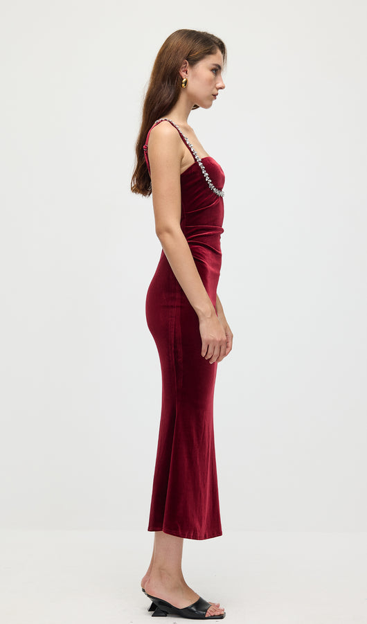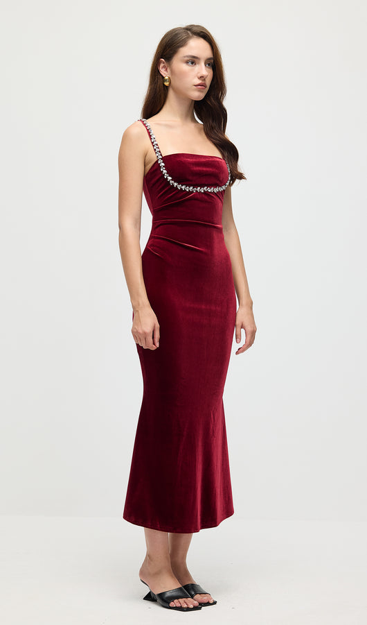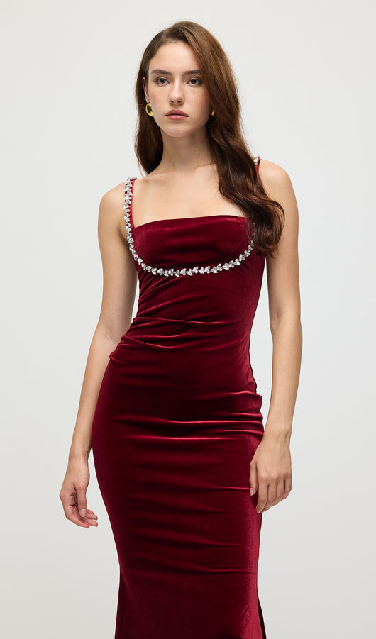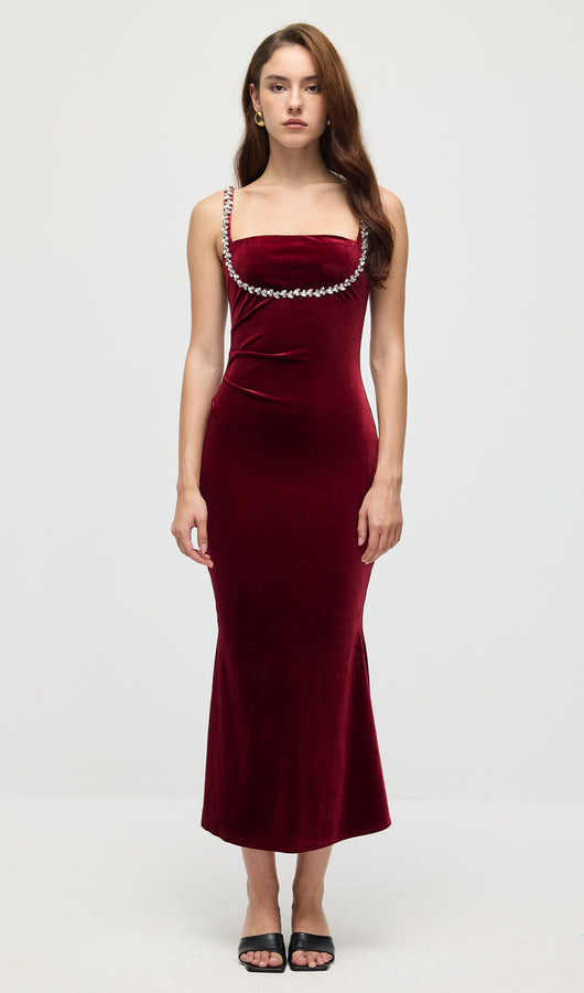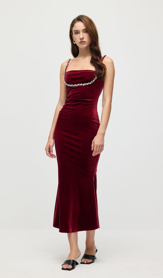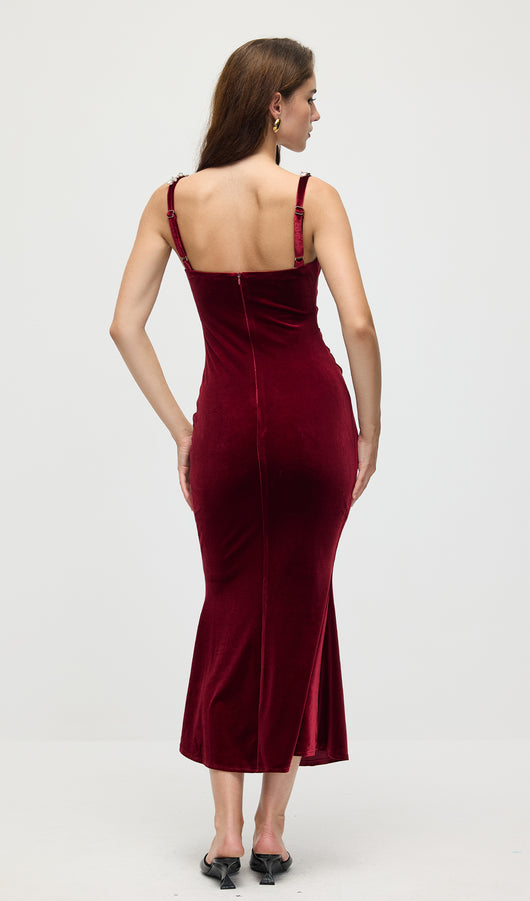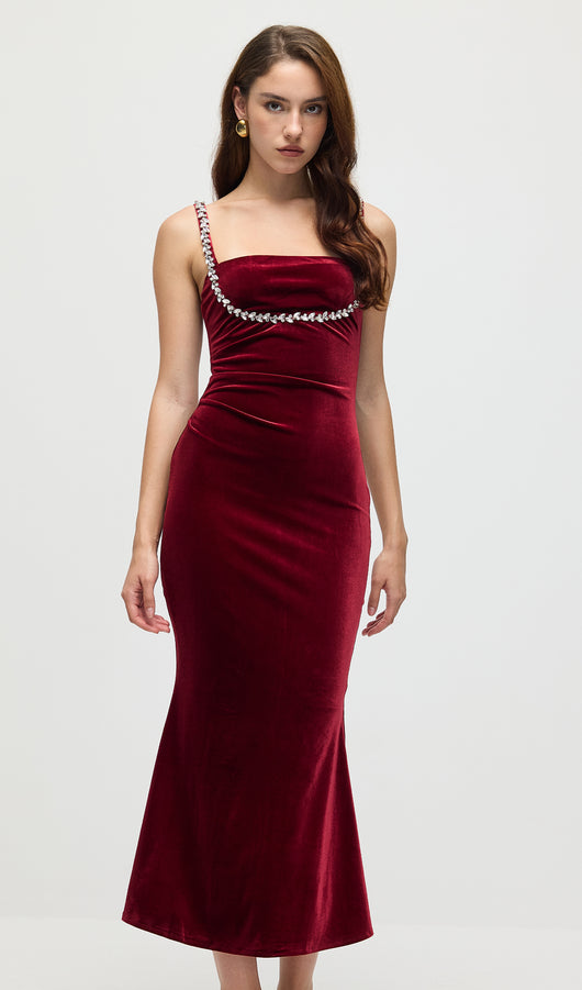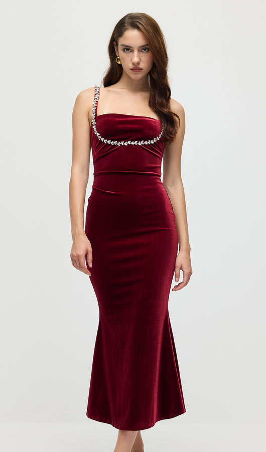 Elevate your evening wardrobe with this sophisticated sleeveless velvet midi dress. The luxurious velvet fabric drapes beautifully, creating an elegant silhouette that transitions seamlessly from cocktail events to formal gatherings. Intricate embellishments add refined detail and visual interest, while the midi length offers timeless versatility. The sleeveless design showcases the shoulders and pairs effortlessly with statement jewelry or a structured blazer. Perfect for those seeking understated luxury with a touch of glamour.