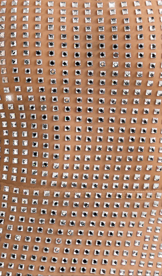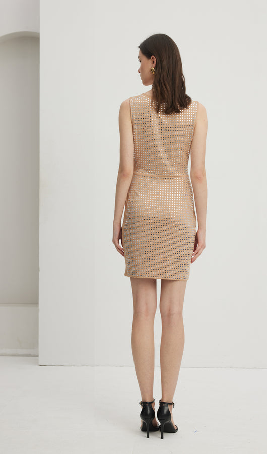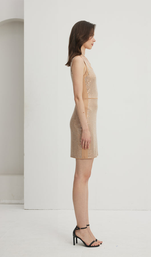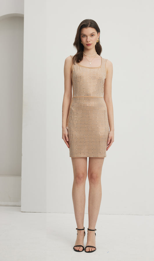 Endless sparkle. Hand-embellished with dozens of sparkling HOTFIX crystals, the mini dress is sure to turn heads. It’s crafted from premium 20D mesh in a bodycon silhouette for a signature streamlined look. Featuring a lightweight single-layer mesh lining, it’s finished with a flattering square neckline and tapered straps.