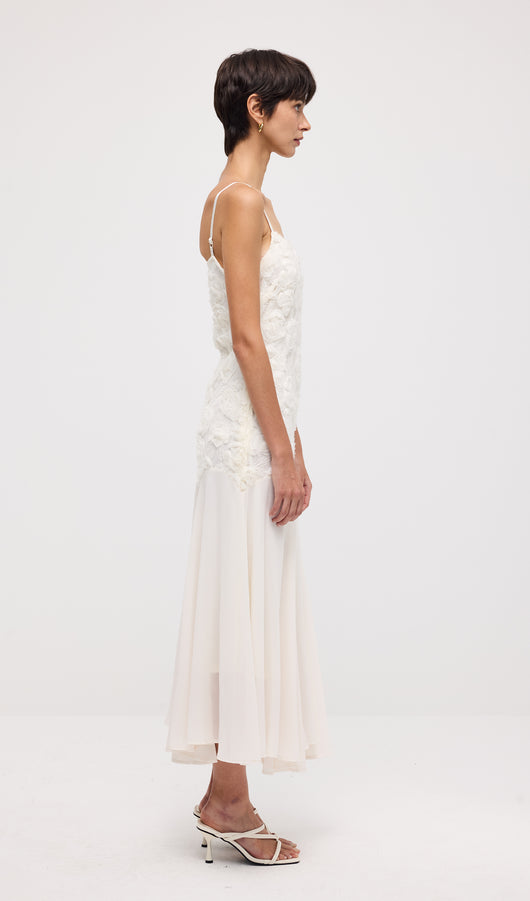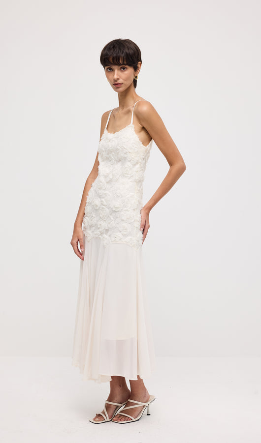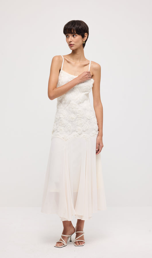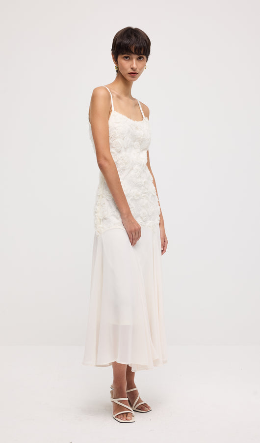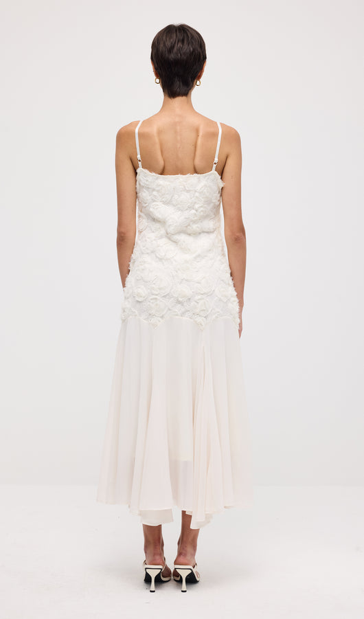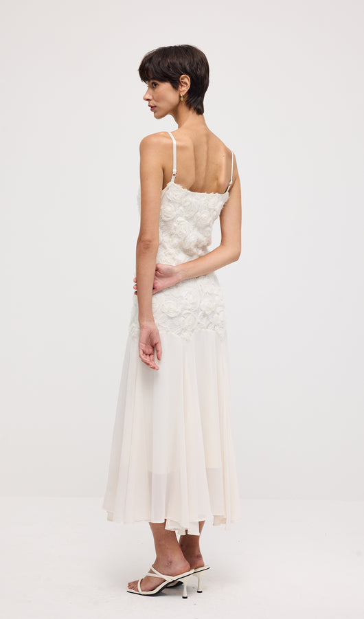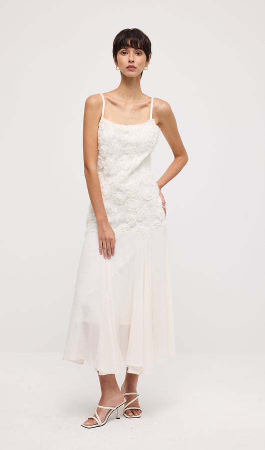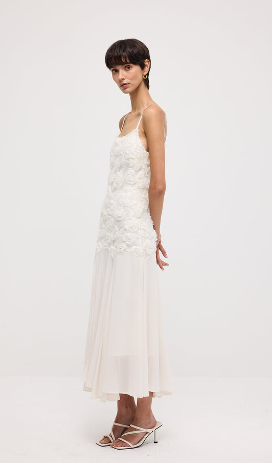 Floral Embroidered Pleated Hem Midi Dress