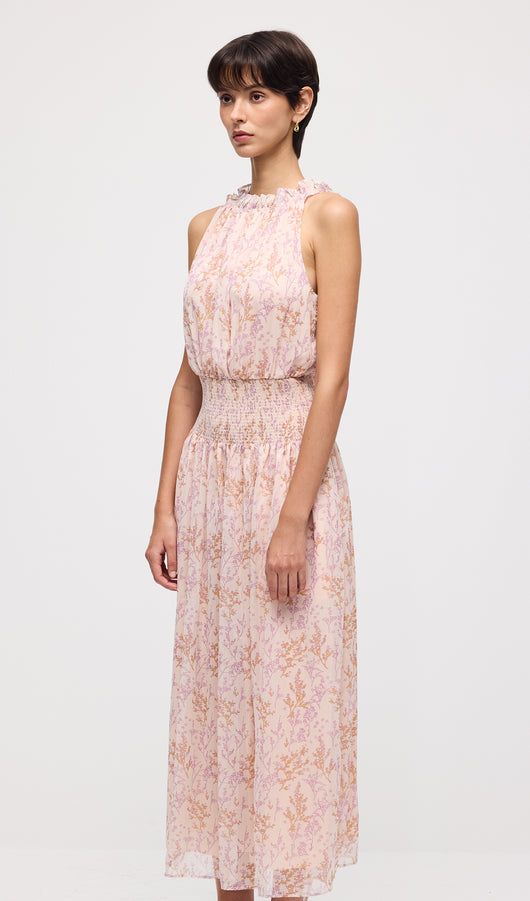This Floral Print Sleeveless Midi Dress offers a refined blend of elegance and comfort. Crafted to highlight your silhouette, its sleeveless design ensures ease of movement while the midi length provides a versatile, polished look. The delicate floral pattern adds a timeless touch, making it suitable for both casual occasions and more formal settings. Perfect for warm weather, this dress pairs effortlessly with a variety of accessories to complete your ensemble with expert sophistication.