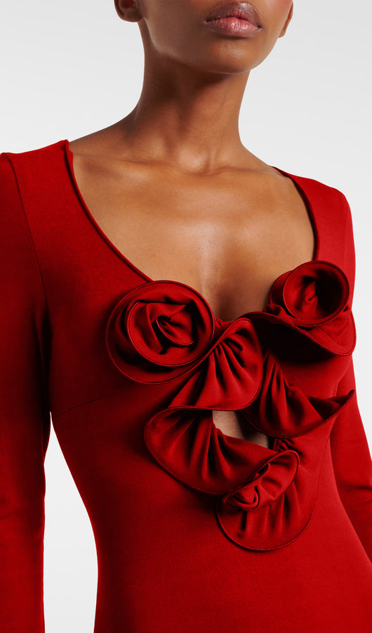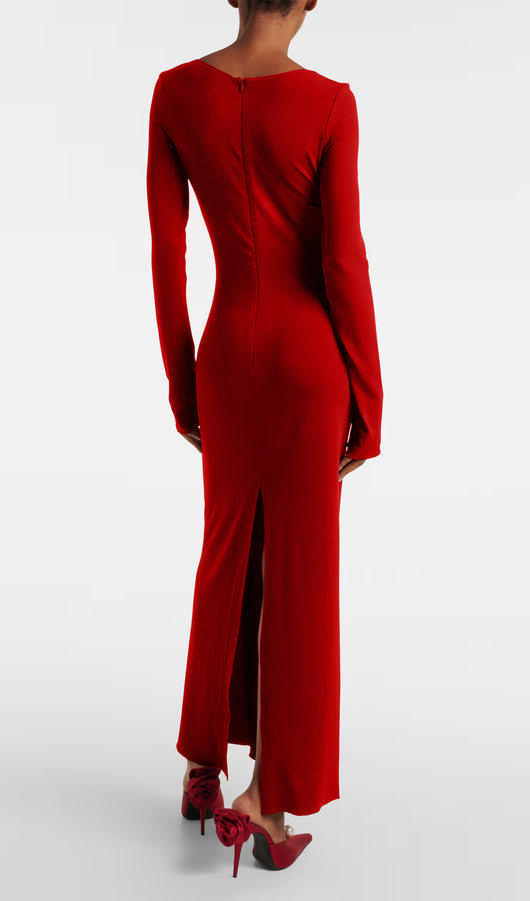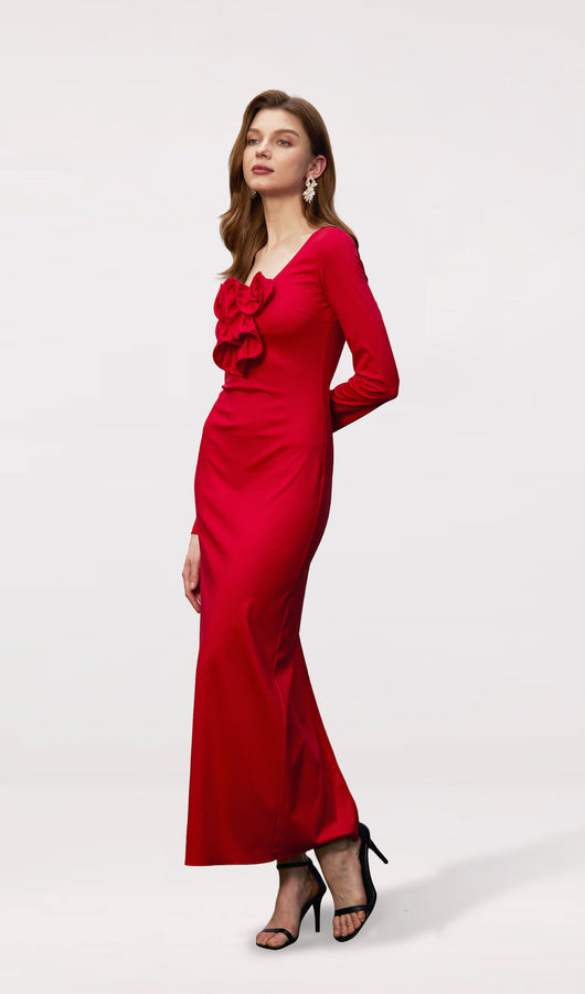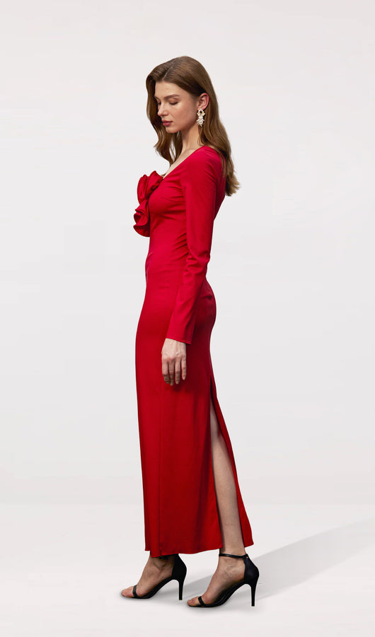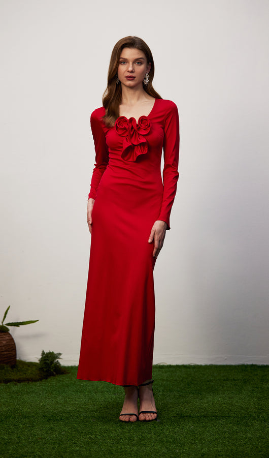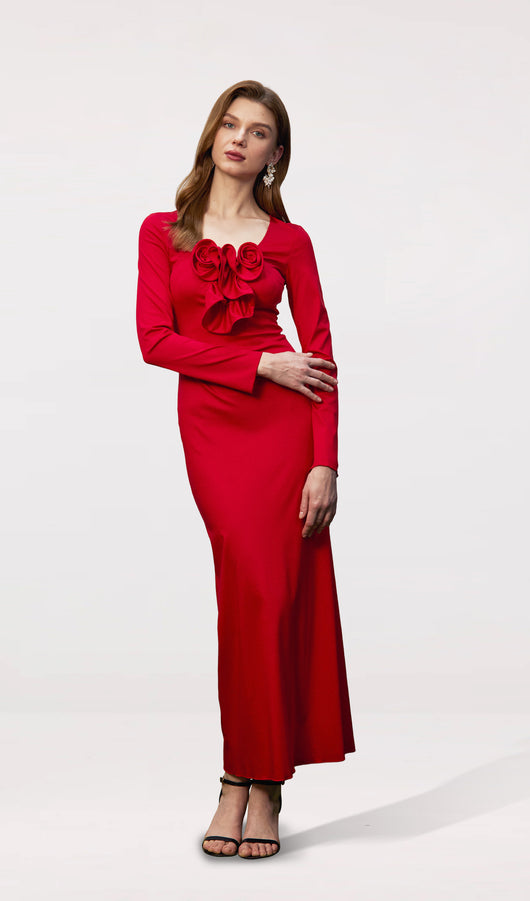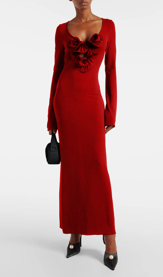 Flower Applied Jersey Maxi Dress