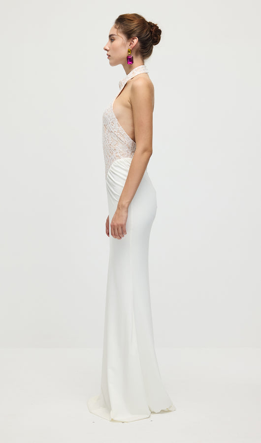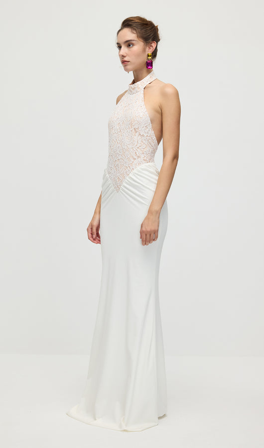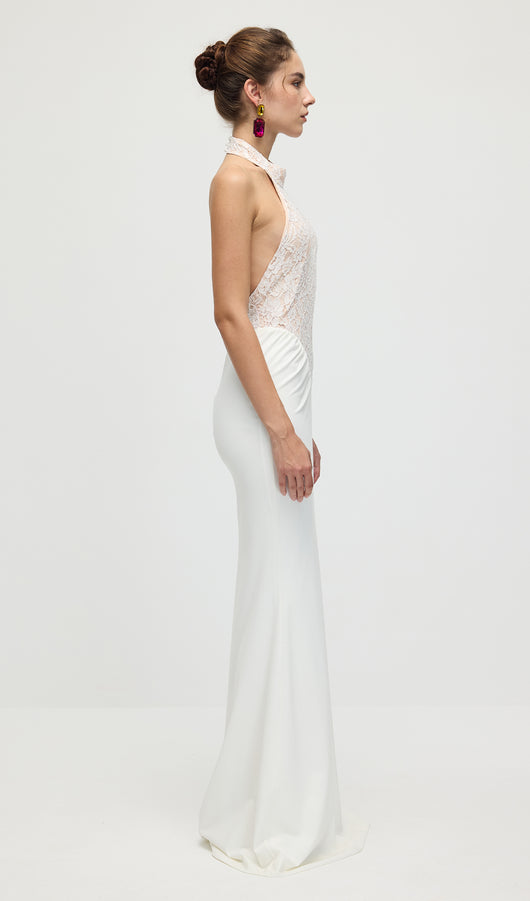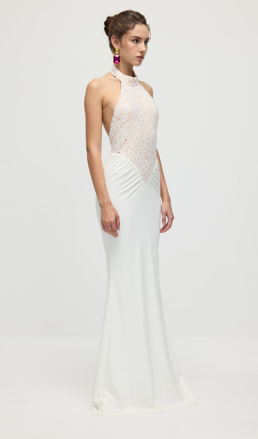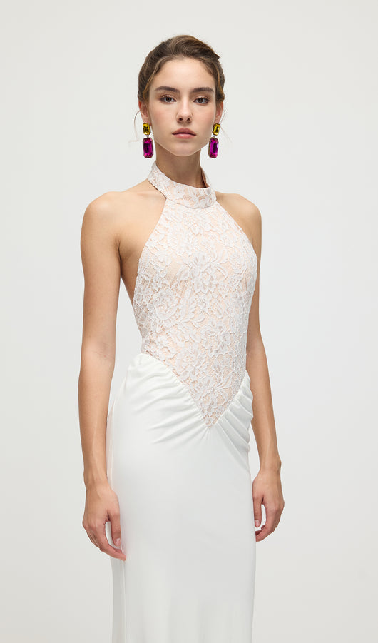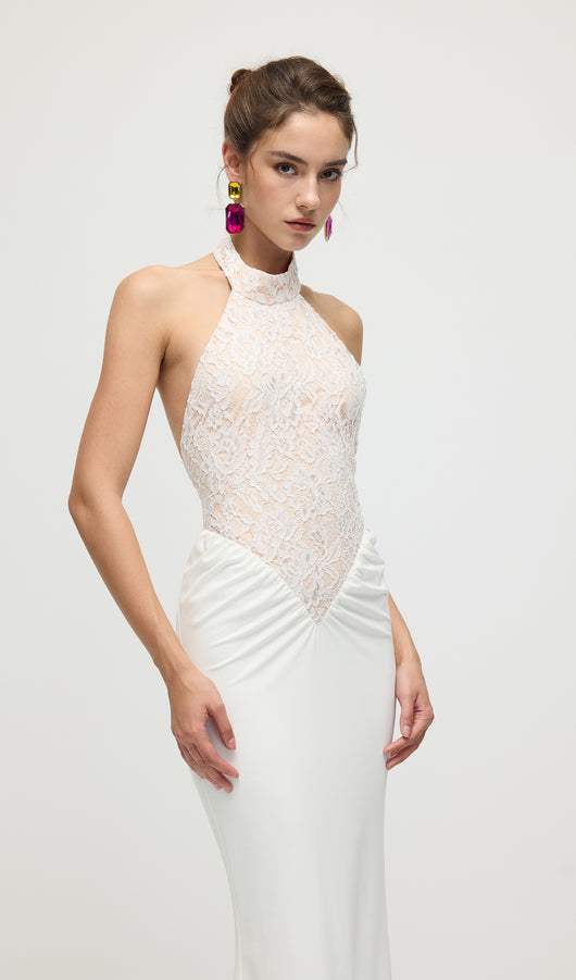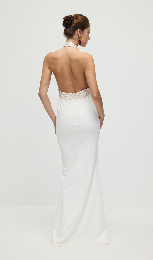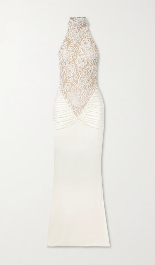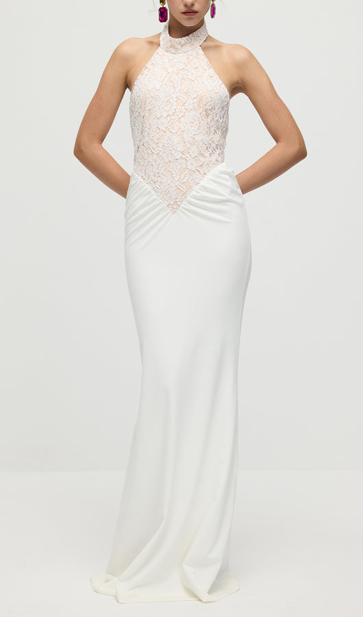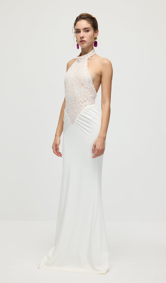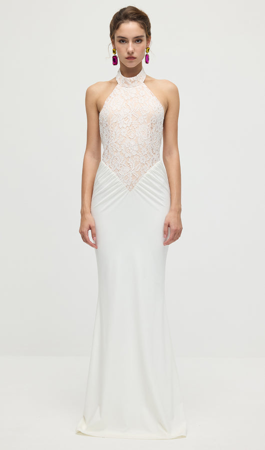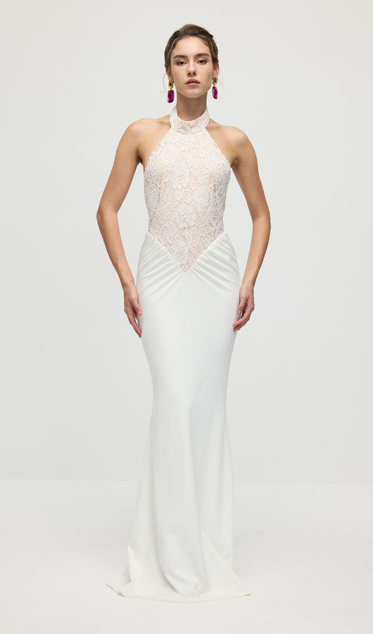 The Gathered Lace Jersey Halterneck Dress combines delicate lace detailing with a soft jersey fabric for elegant comfort. Designed with a halterneck silhouette, it accentuates the shoulders while gathered elements create a flattering fit. Ideal for sophisticated occasions, this dress offers both style and ease, making it a refined choice for your wardrobe.