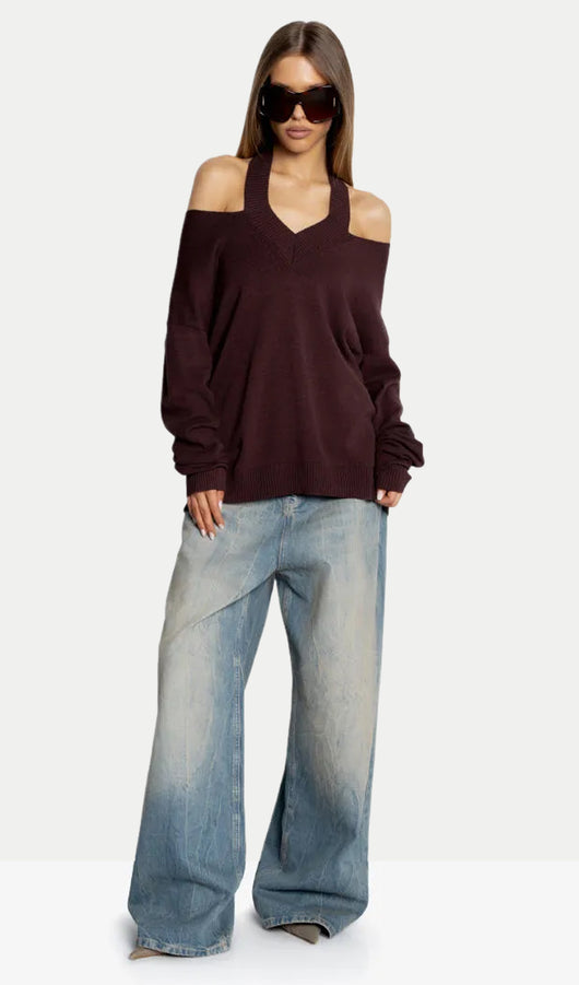 Halter Neck Off-Shoulder Sweater