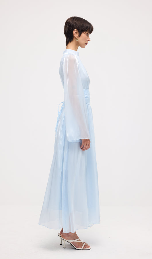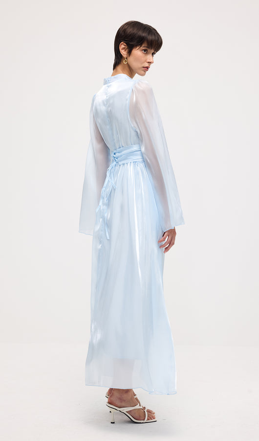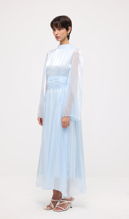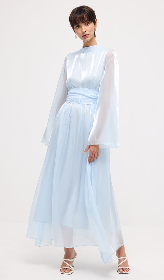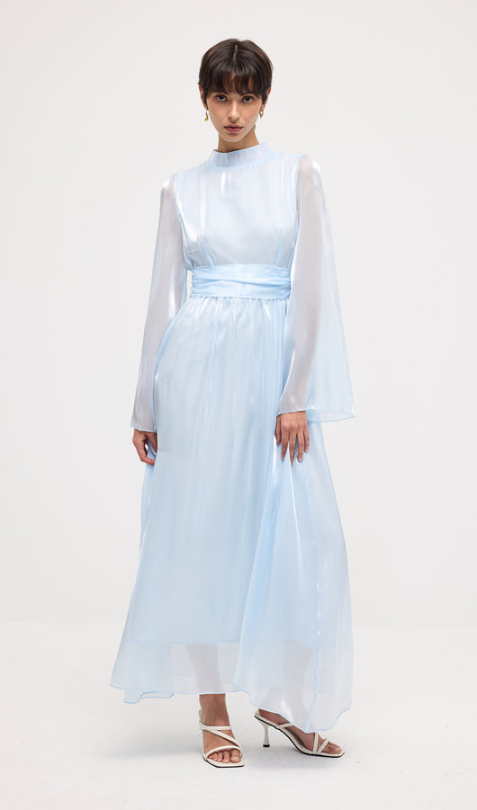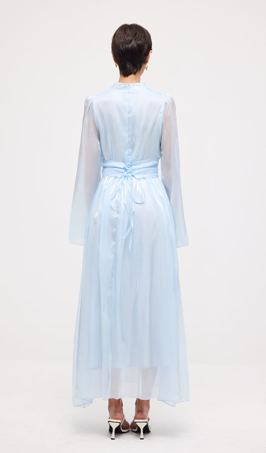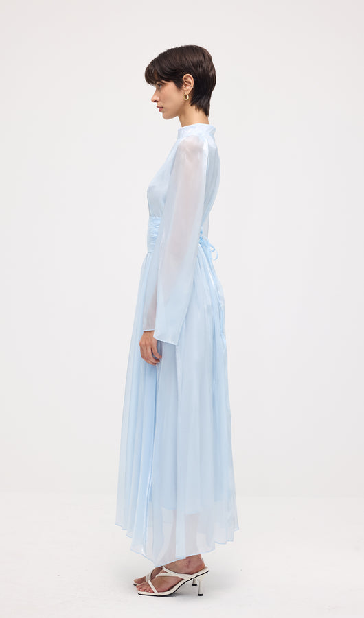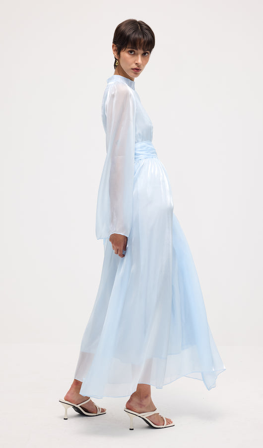 High Neckline Flared Hem Maxi Dress