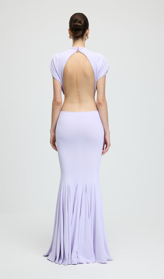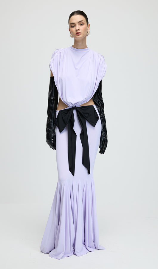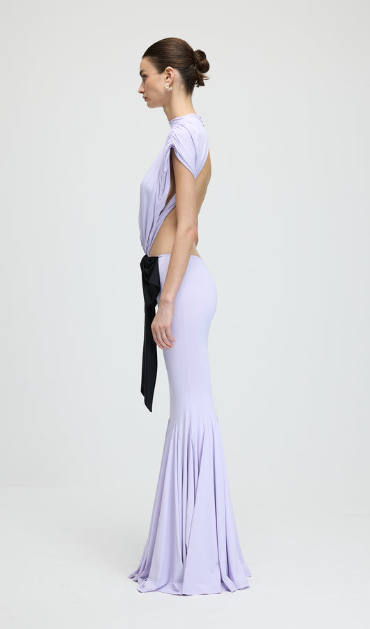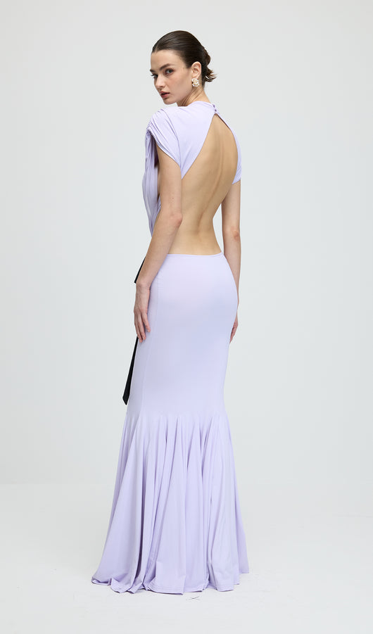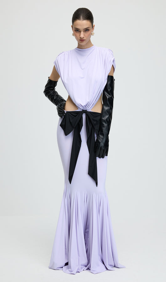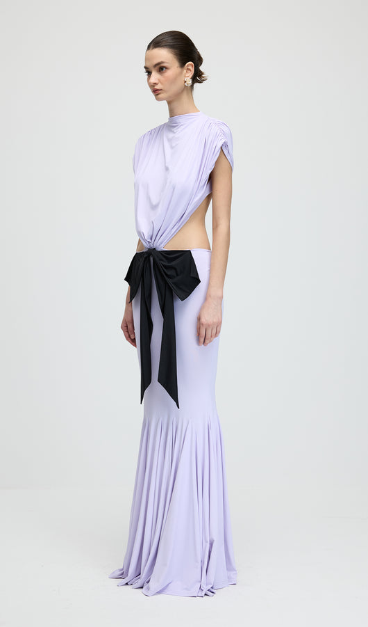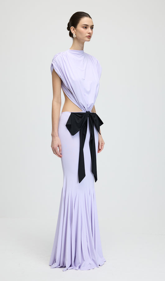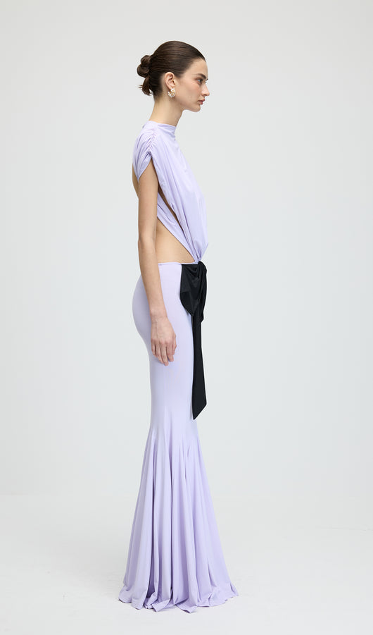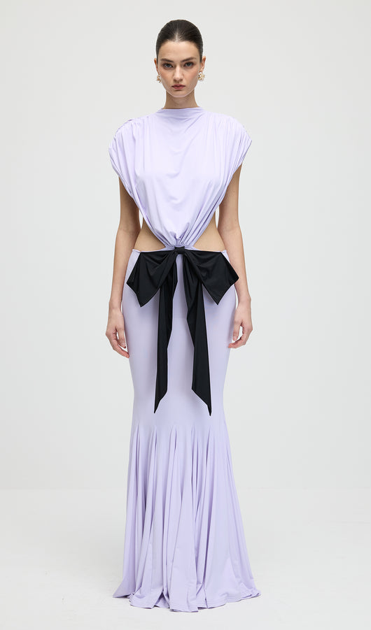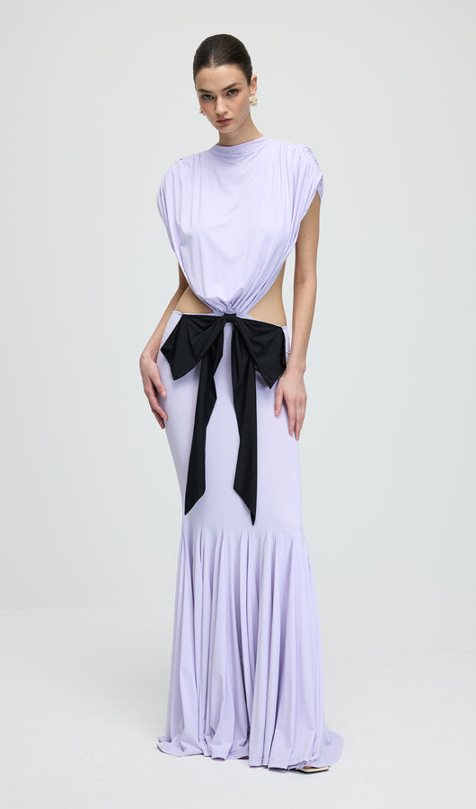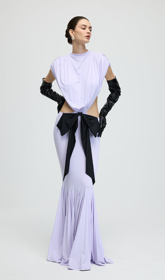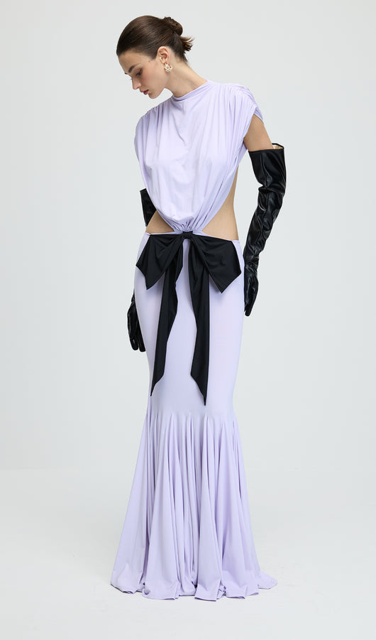 Jersey Cut Out Detail Bow Maxi Dress In Purple