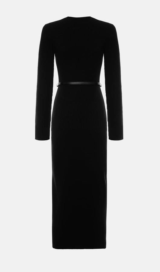 Knitted V Neck Midi Dress -Black