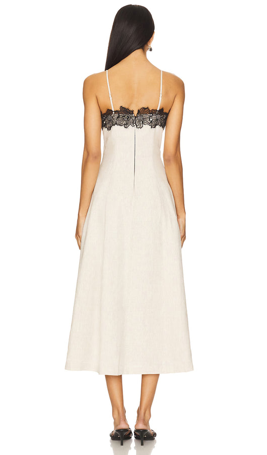 Lace Neckline Trim Midi Dress