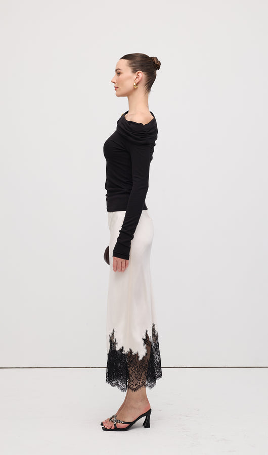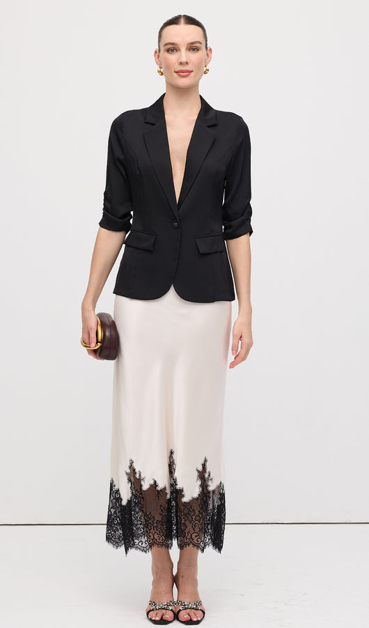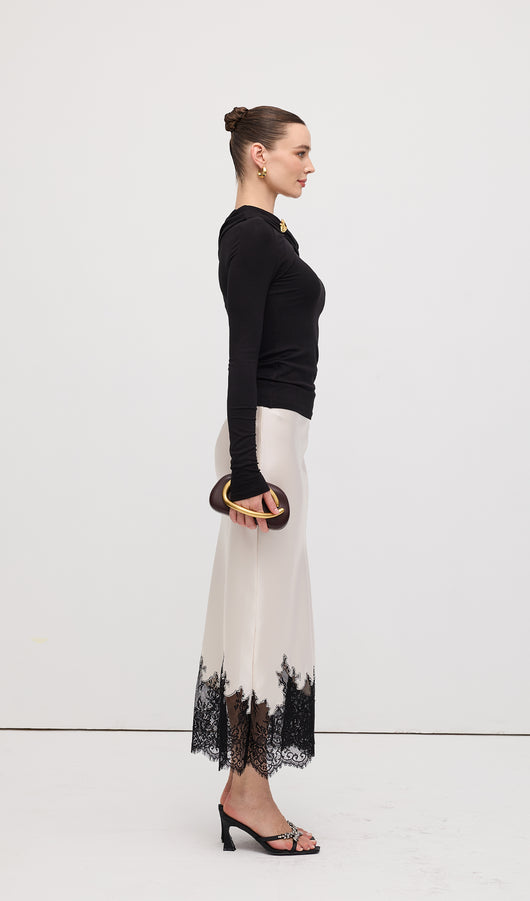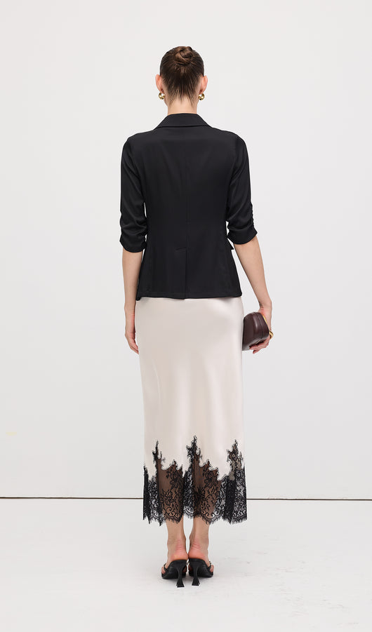 Elevate your wardrobe with this sophisticated Lace Satin Midi Skirt. Crafted with premium satin fabric and delicate lace detailing, this skirt offers a perfect balance of elegance and contemporary style. The midi length provides versatile wearability for both professional settings and special occasions. Its fluid silhouette creates a flattering drape that complements various body types while the refined construction ensures lasting quality.