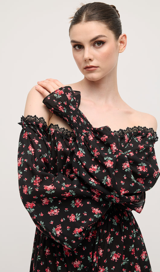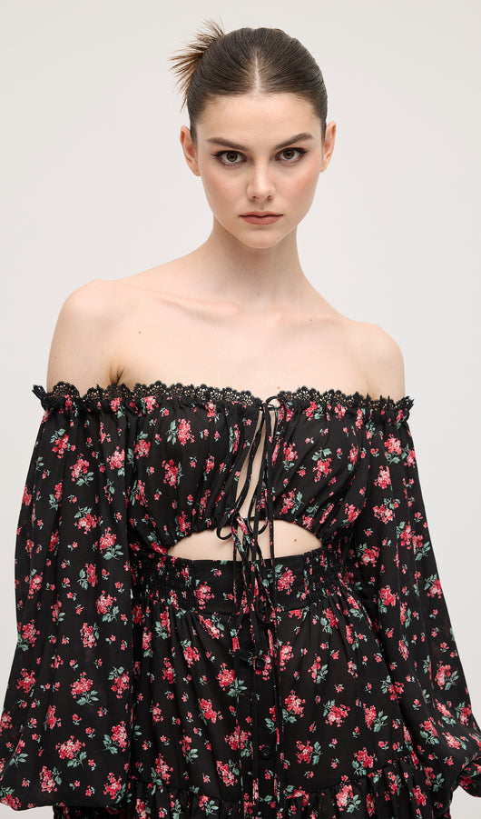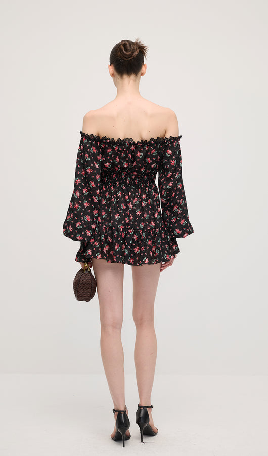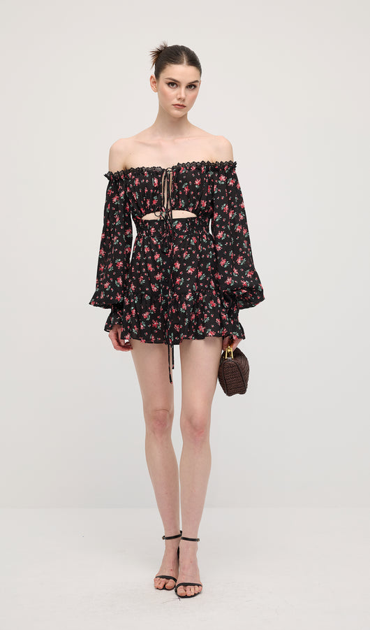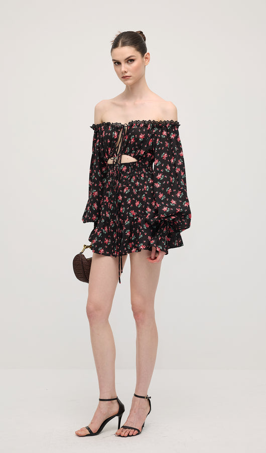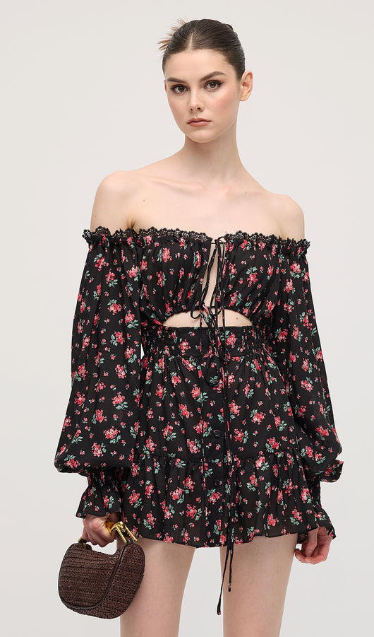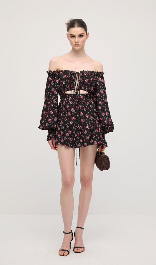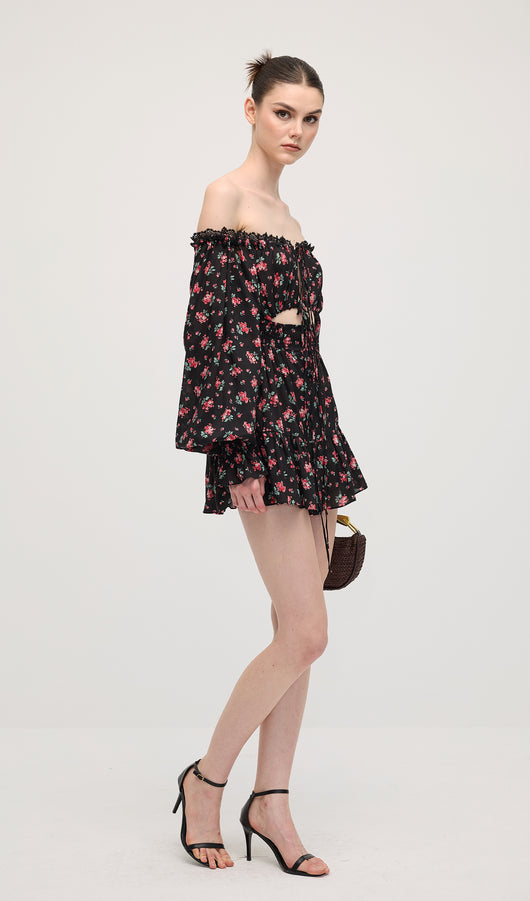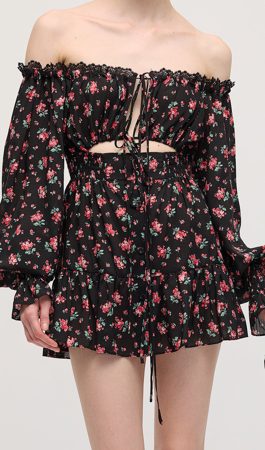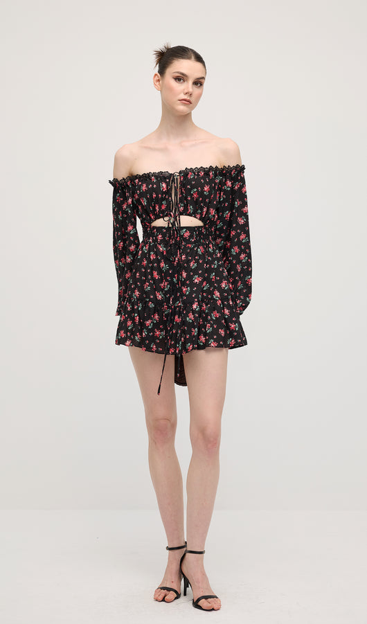 Lace Up Mini Dress Two Piece Set In Rose Print