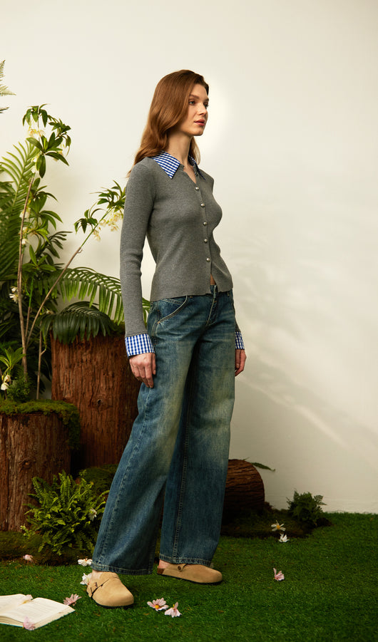Expertly crafted with high quality material, our Lapel Button Knit Top is a must-have for your wardrobe. The lapel button design adds a touch of sophistication, while the high stretch feature ensures a comfortable and flattering fit. Elevate your style and confidence with this versatile top.