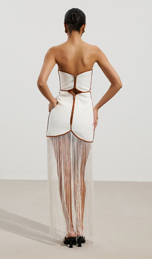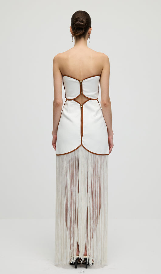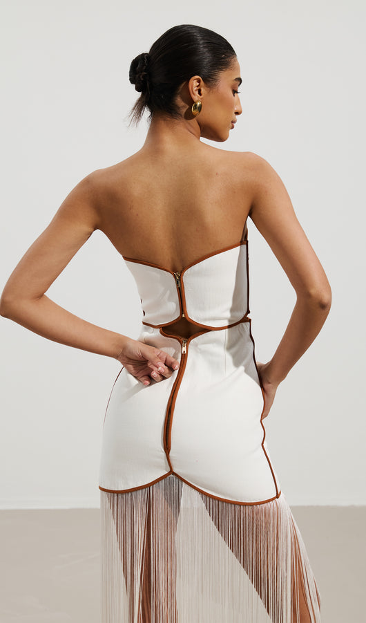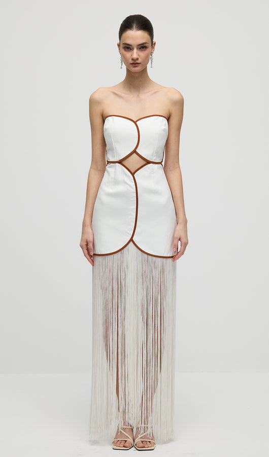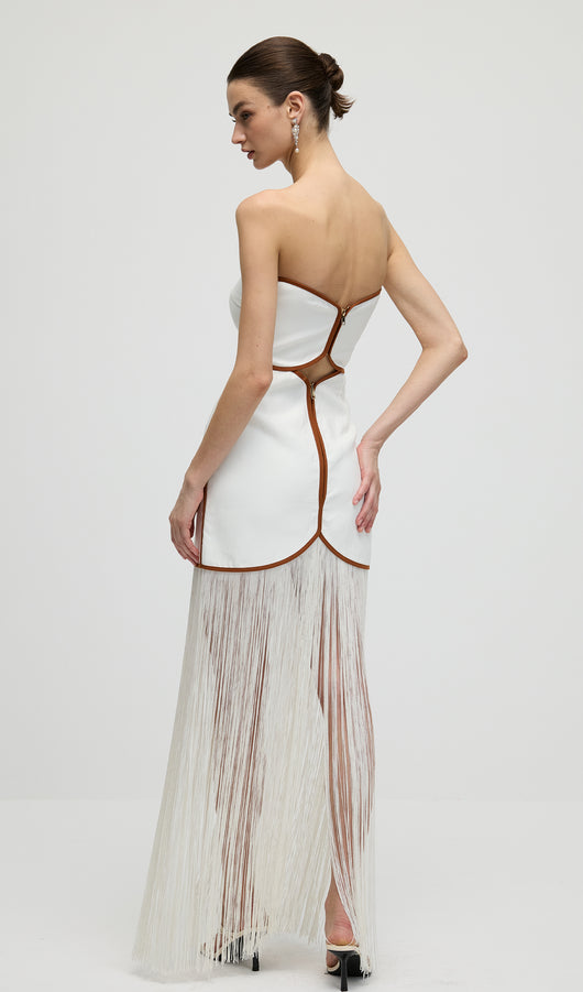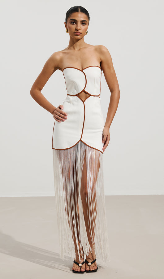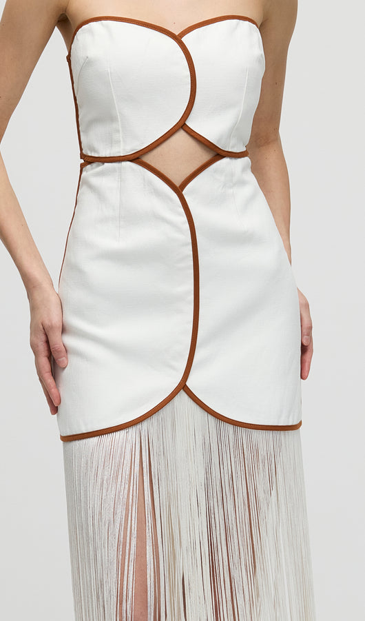 Linen Off Shoulder Hollow Out Tassel Maxi Dress