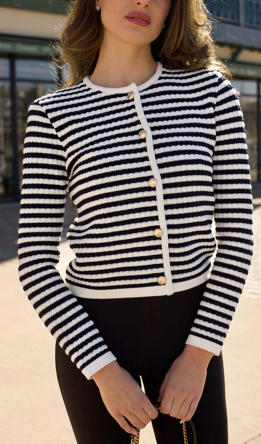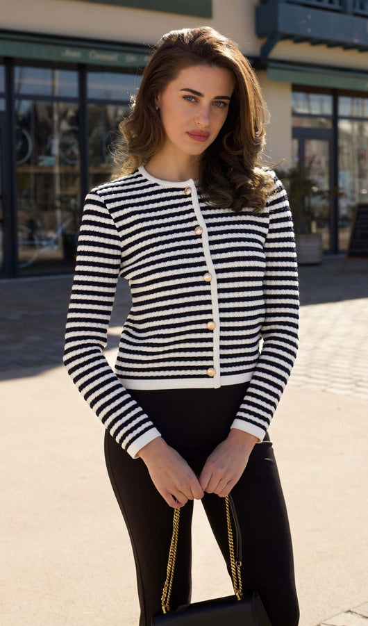 This Long Sleeve Knit Jacket combines a boxy silhouette with a high neckline and subtle shoulder pads, delivering a refined balance between relaxed comfort and structured elegance. Crafted for versatility, it offers a polished look suitable for both professional and casual settings, enhancing your wardrobe with timeless sophistication.